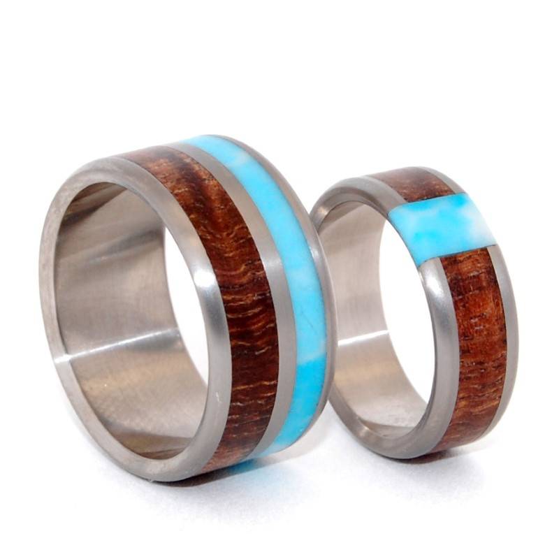 Though the name is a bit of a mouthful, these sleek, polished rings are stunning. Available from Minter + Richter, these rings are created from Koa wood and titanium, and feature inlays of gorgeous Caribbean-blue Larimar stone.