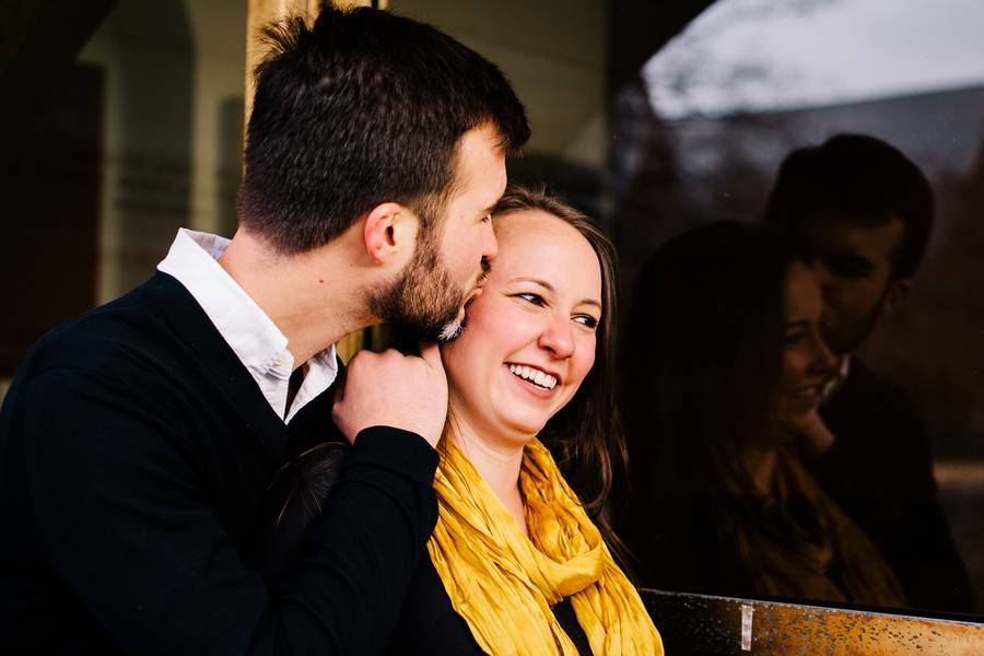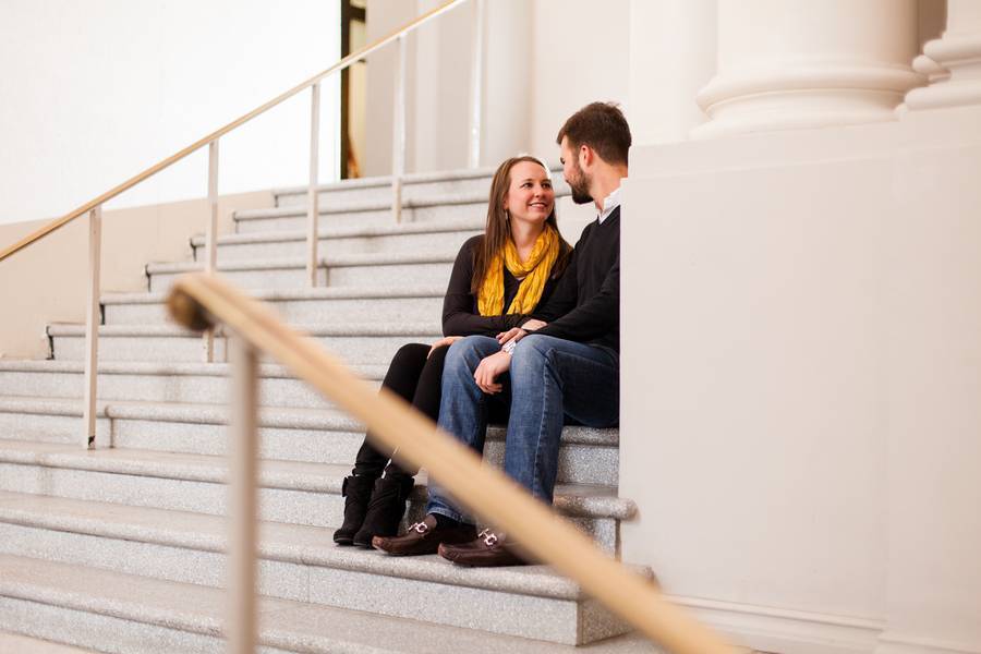 We had a beer at lunch. Just kidding! I mean, we did, but that’s not what helped us relax. It’s definitely easy to imagine a posed shoot to be somewhat awkward, especially if you or your fiancé is shy. My first advice is to mentally prepare yourself for the day. Make sure you’re physically comfortable in the clothes and makeup you choose. If you can, get your hair and makeup done professionally, to give you an extra boost of confidence. If that’s not an option, plan ahead. Our photos were on a Monday when most salons are closed, so I had to do my hair and makeup. To prepare, I spent some time watching YouTube tutorials on hair and makeup and practicing the application. A quick Google search will yield tons of information. The other advice I have is to allow yourselves to ease into the process. If you know you’re stiff in front of a camera, ask your photographer if the first few shots can be “practice shots.” After you’ve been at it for ten or fifteen minutes, the experience won’t seem so weird.
