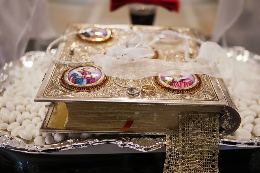 The crowns on the bride and groom’s head to symbolize blessings.
