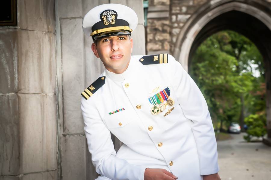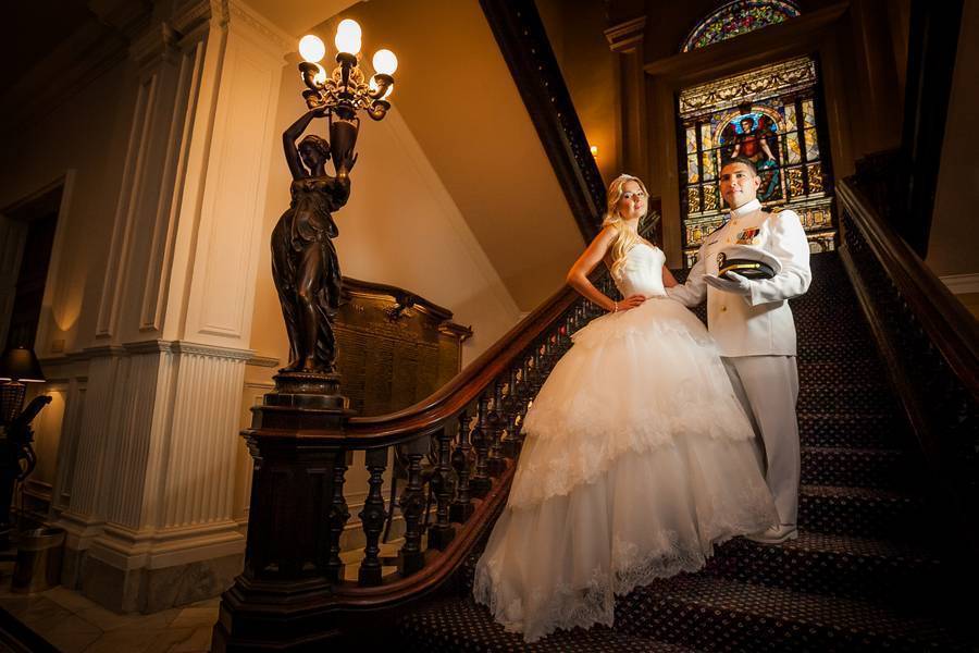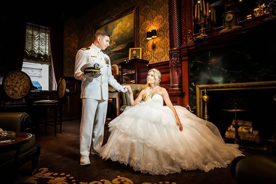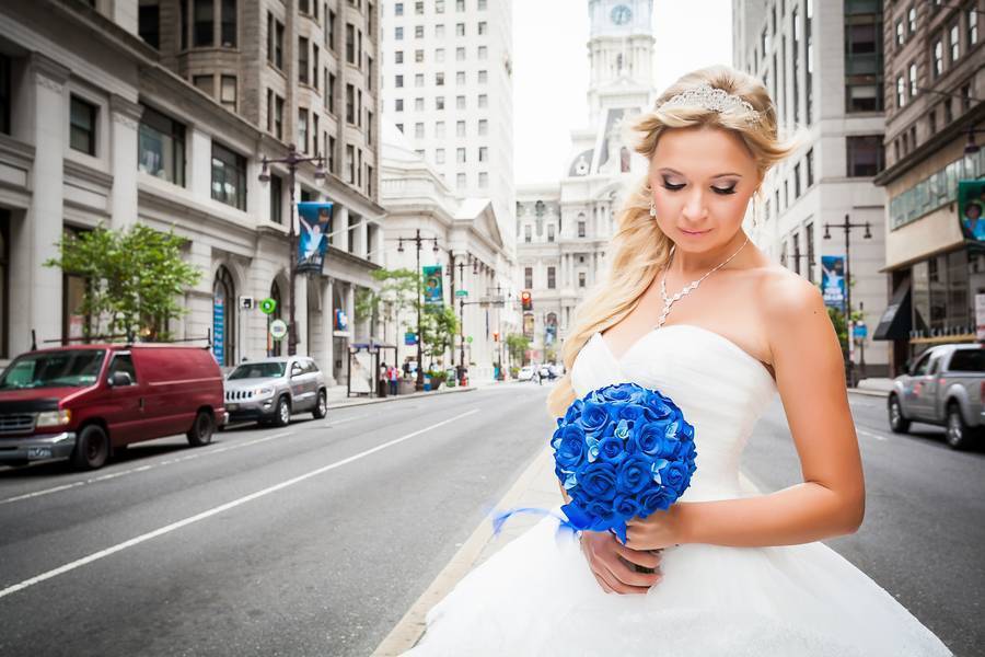 The couple was inspired to intertwine navy colors and their diverse heritages throughout the wedding theme. It could sound a bit unusual, but their Philadelphia wedding was actually rather a destination wedding since the bride is originally from Russia and the groom is from Lebanon. Currently, Victoria lives in Dallas, TX, Hisham is serving in the Navy overseas, and their family and friends came to their wedding from all over the world. For their preparation part, Hisham and Victoria picked a luxurious Ritz Carlton Hotel, in the heart of Philadelphia.