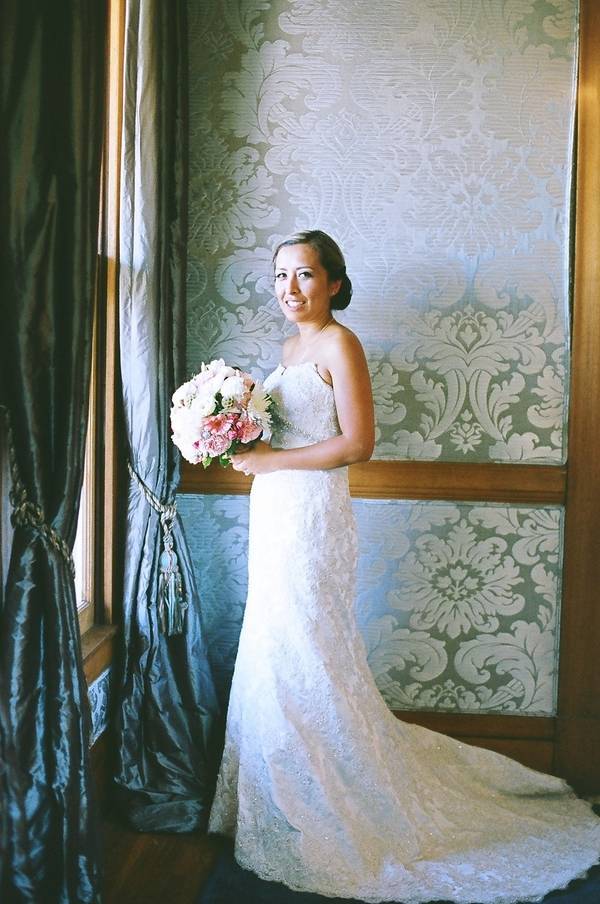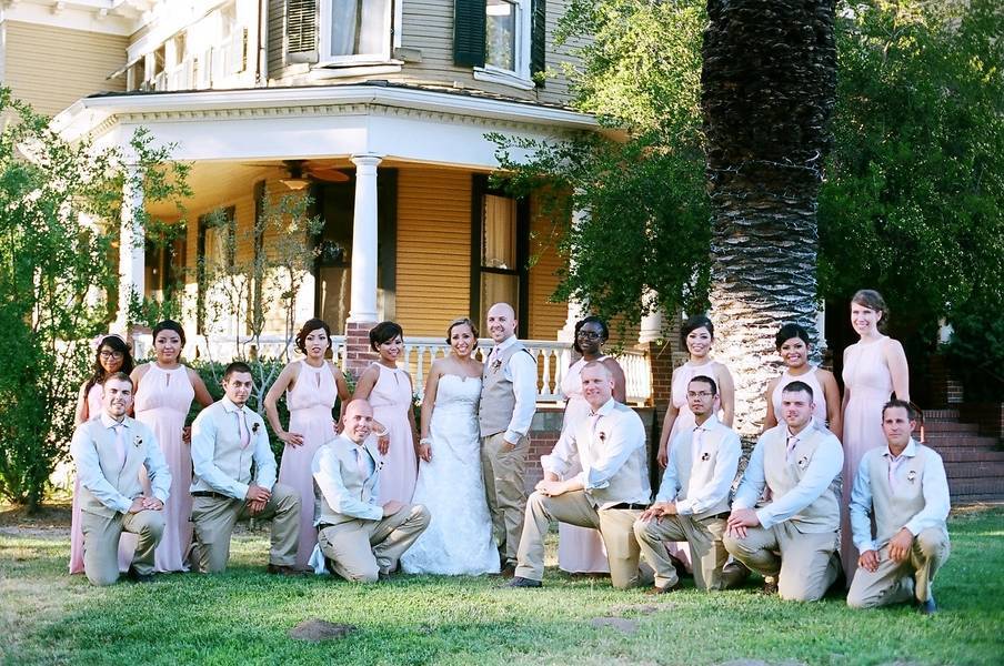 Joe: A combination of relaxed, cool (for those hot Modesto nights), and vintage. Alma: We also wanted to save money, I did not want to make my bridesmaids spend a lot of money on a dress that they were only going to wear once. So, with the help of my bridesmaids, we found the perfect dress. A light shade of pink, long, and beading on the neckline. The best part about it is that the bridesmaids spent around $40 on their dress (Forever 21), and another $40 on their shoes and accessories. Our groomsmen spend about $150 (shoes, pants, vest, shirt, and tie). My husband shopped a lot at Men’s Wear House, so when we decided the colors for the wedding we went to them, and they emailed him whenever they had a deal.