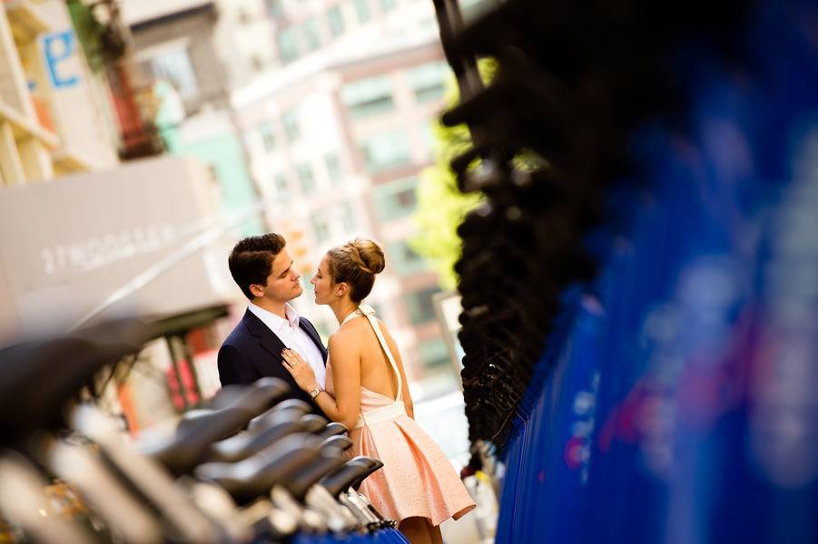 Amanda and Anthony were in style as they had a stroll in the city while their photographer is capturing their natural sweetness. This romantic duo was told to dress to kill, and they did! With Amanda’s blush cocktail dress on stilettos and Anthony’s coat on sneakers, they were a winning combo! But here’s the bonus – their adorable brown pup tagging along in their photos. Isn’t that cute? May you both live a lifetime together in happiness and joy, Amanda and Anthony. Congratulations on your engagement!