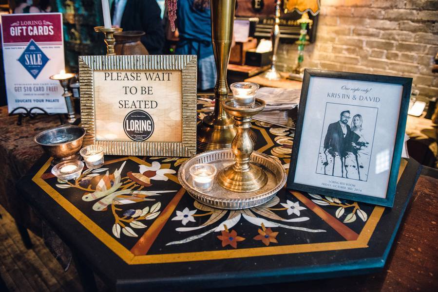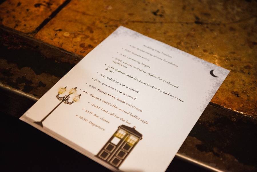 The DIY projects are small in stature, but those that knew the bride and groom completely understood their significance. If people use the Loring Pasta Bar as their venue, they know that they are going to get a lot for what they pay for in ways of decor. However, all of the tables (as well as other decorated areas) had small TARDIS’ from Doctor Who on them. The couple both love the show and wanted to incorporate it into the day. The great thing about this is that we booked them when we were shooting Comic Con, where the groom was waiting to see and possibly meet cast members of the show. So it was meant to be.