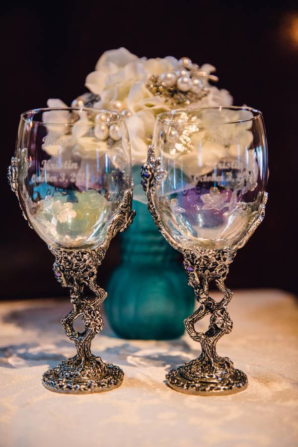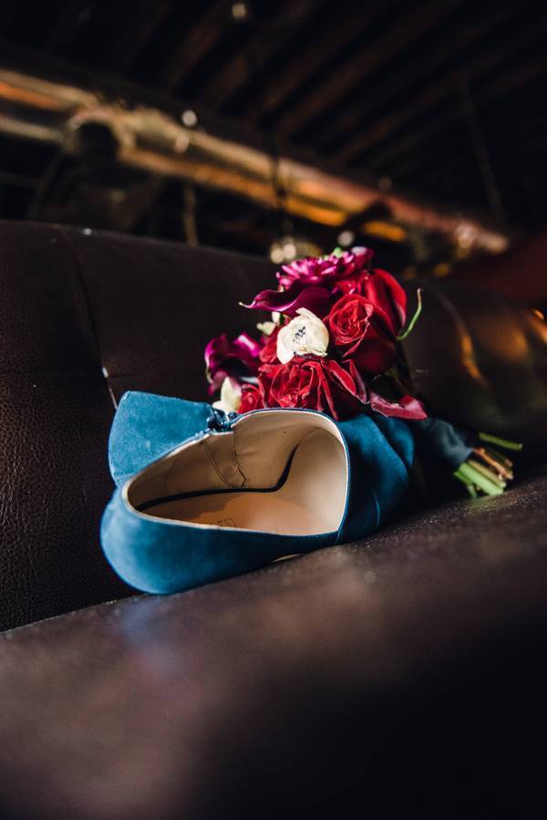 The blue of the wedding day outfits was inspired off of the whole “something blue” aspect of one’s wedding day. Also, the bride and groom were both huge Doctor Who fans and had the Doctor Who TARDIS as centerpieces and more. Fans of the show know the TARDIS as the large blue police box, another inspiration for the coloring.