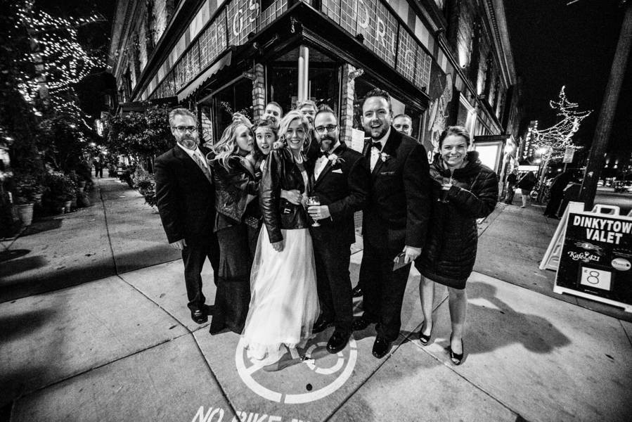 There were so many great parts of the day, but the reception takes the cake, so to say. David and Kirstin are such fun people that regardless of what would happen, they would brush it off as if it was nothing. The reception was so fun because it was all about family and friends, and everyone was just enjoying themselves. At the end of the night, the bride decided she wanted a “street photo” and went outside of the venue and did some really fun shots with the party and her family in the streets around the University of Minnesota. It added a very carefree element to the entire day that cannot be faked.