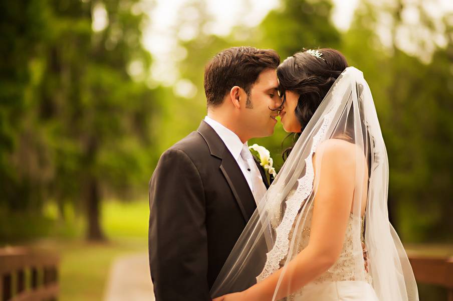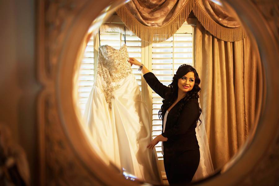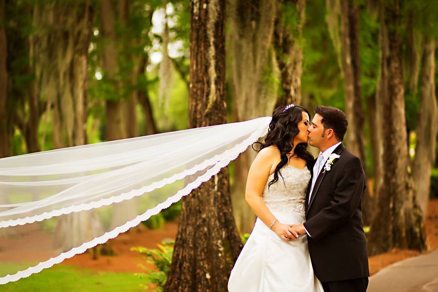 We wanted to go with something very elegant; traditional yet classic style wedding. So the gentlemen in ties and suits and the ladies in their blue dresses. My dress and veil were absolutely gorgeous – they were handmade in Spain.