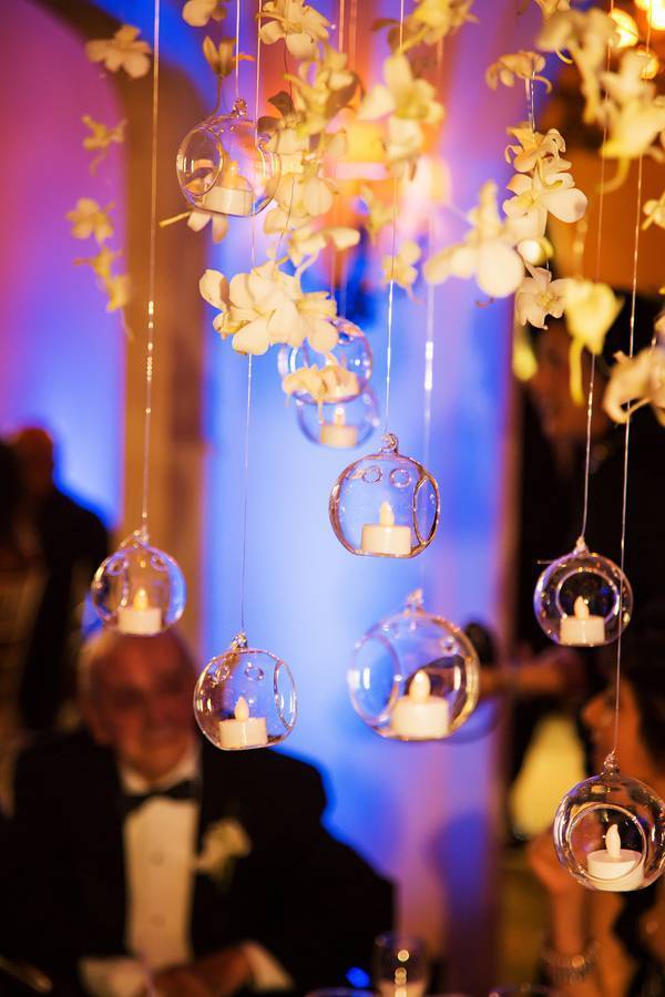 There was not a particular theme, but rather a wedding that was very elegant and simple with the use of orchid flower arrangements that hung over the guest tables.