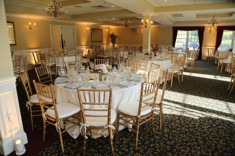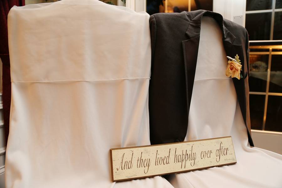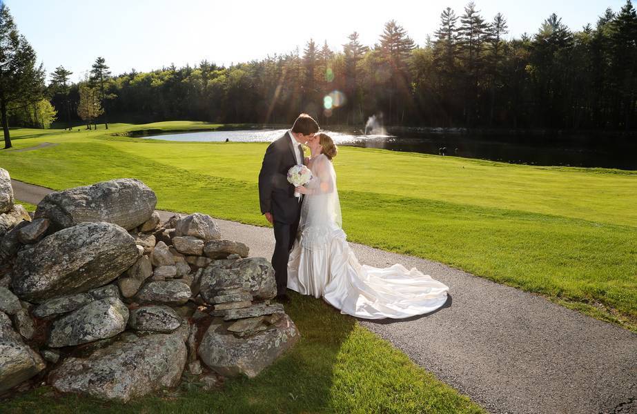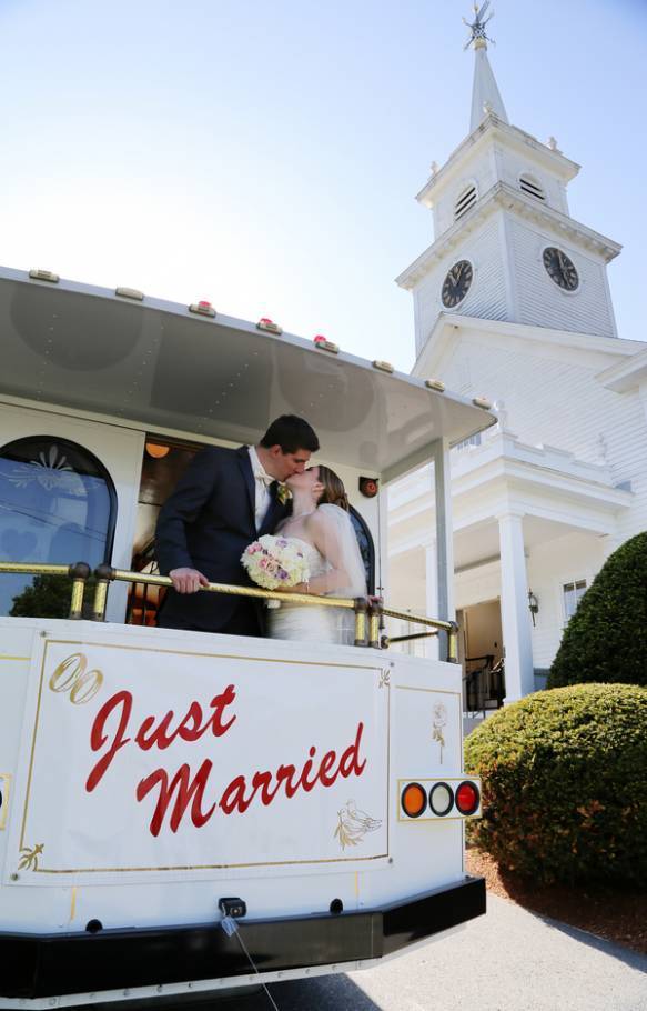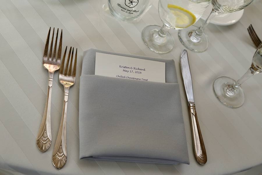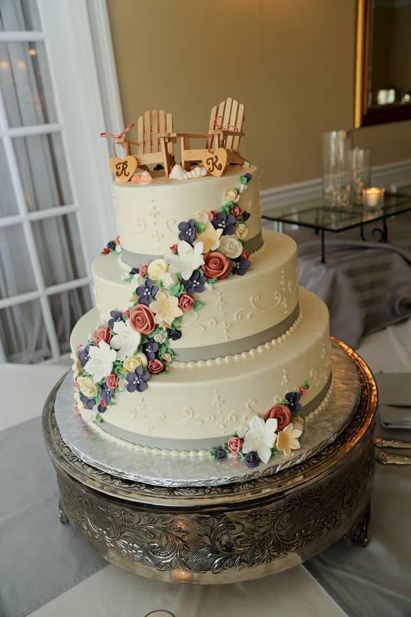 “I started planning the wedding the morning after I got engaged,” bubbles this happy bride. They worked in a lot of details from their favorite spot: the beach. “Our cake toppers were two Adirondack chairs. We put sand dollars on our wine glass favors because we love looking for sand dollars on our walks at Goose Rocks beach. We usually compete to see who can find the most!”