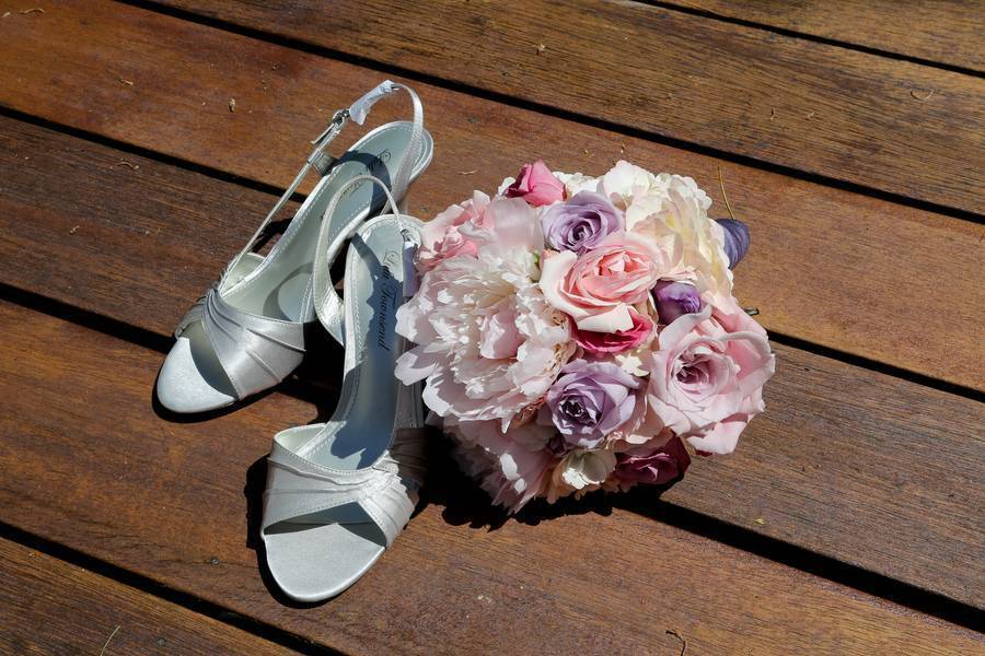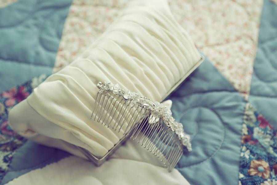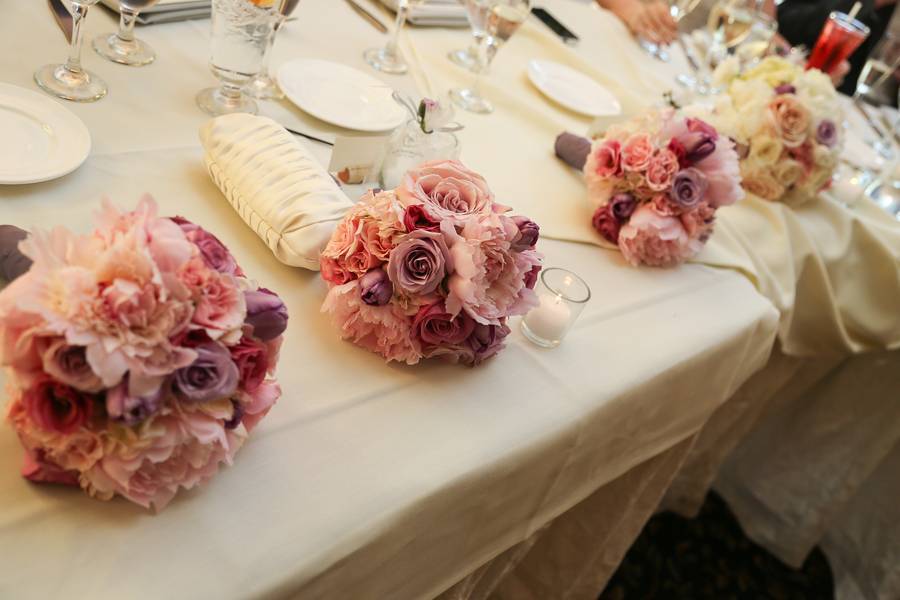 I got my dress at Confetti and Lace, a little bridal shop in my hometown of Littleton. I must have driven by this boutique a million times and never thought I would end up getting my dress from there. It was a Maggie Soterro, and it was the last dress I tried on. It had all the best parts of all the dresses I tried on. We chose the color of the bridesmaids’ dresses because I like the classic look of that particular shade of purple (Victorian Lilac).