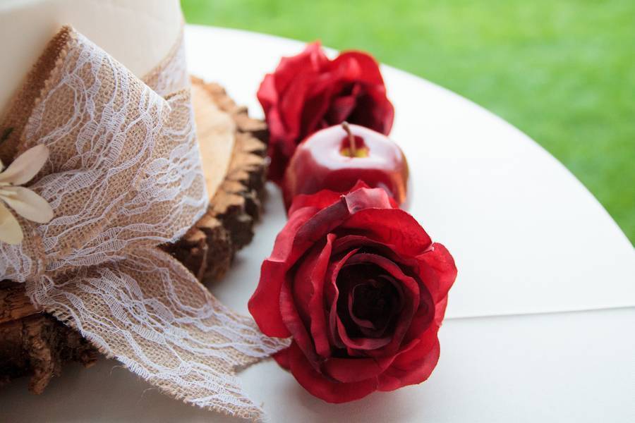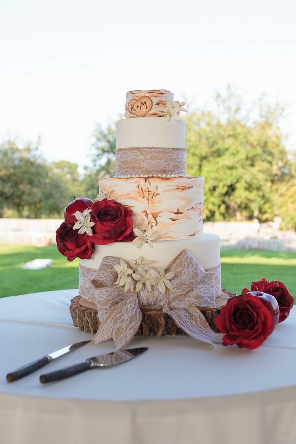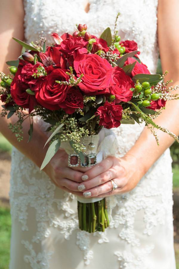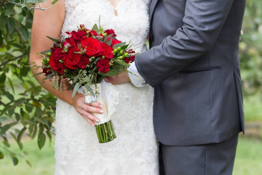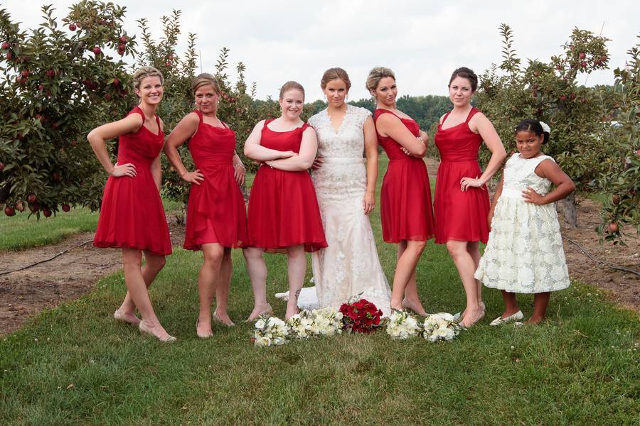 Roses are red, apples are red, Karin and Matthew’s motif is, well, scarlet red. The couple had a wedding at a beautiful orchard wedding complete with the scarlet and grey motif to represent Ohio, particularly Ohio State University. Red, grey, and ivory speaks vintage when matched together — maybe the reason they had vintage cars bring the entourage to the ceremony and reception, so classy! And let me just compliment Karin’s wedding dress – I adore the way the dress hugged her body in a subtle and classy way.