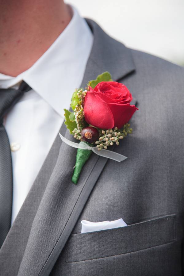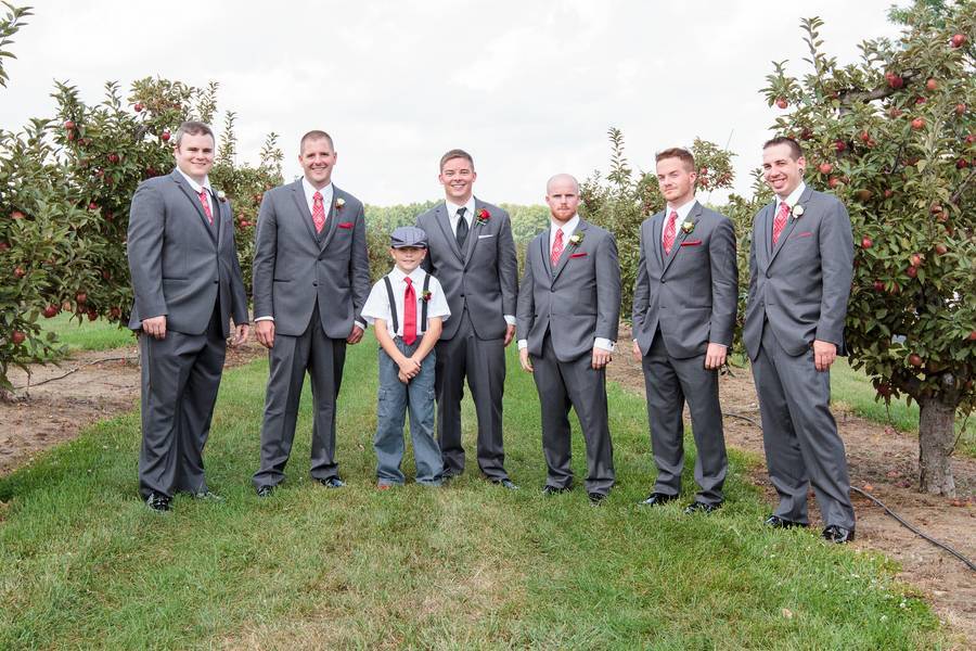 Since the groom was an Ohio State University alum, the couple went with Ohio State Scarlet and Grey in all of their outfits! The groom choose the colors after the bride decided to hold the wedding in her hometown near Ann Arbor, Michigan- home of the University of Michigan. Since there is a large rivalry between Ohio State and the Univeristy of Michigan, the color choice provided some comic relief throughout the whole wedding. Some of the groomsmen who were huge University of Michigan Fans started wearing Michigan stickers during the reception.