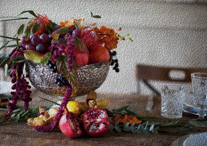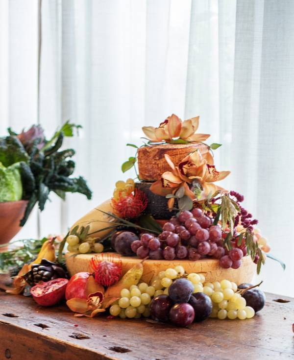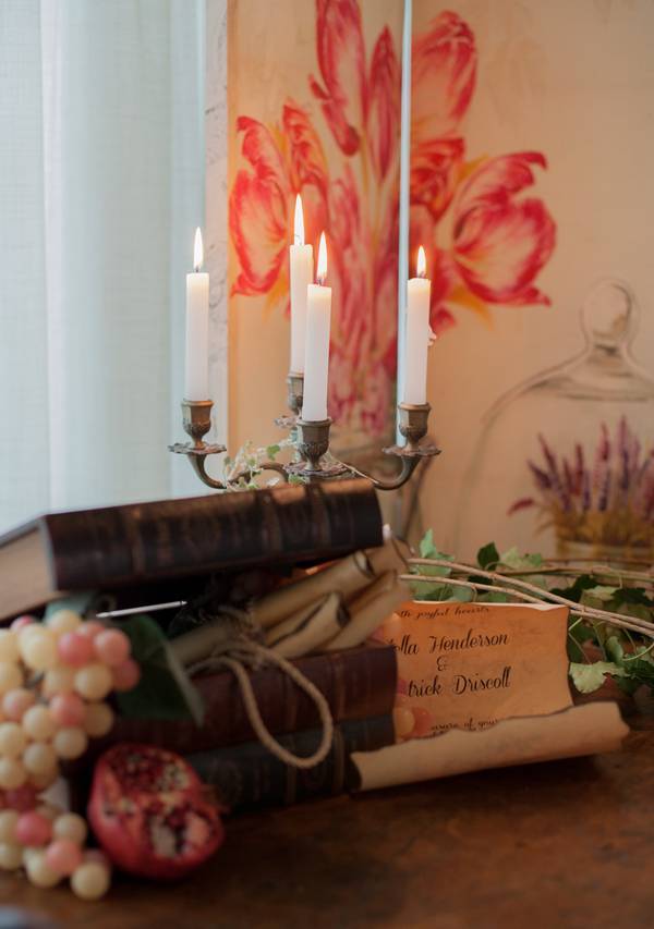 The centerpieces. Those were inspired by still life paintings especially ‘Fruit Still Life with Roses and Honeycomb‘ by Robert Spear Dunning and ‘A Still Life with Flowers and Fruit‘ by Helen Augusta Hamburger. Fruit and vegetables are great alternative centrepieces to flowers and candles, they are rich in colour and complemented our dual-toned colour palette beautifully. They are literally works of art and edible too!