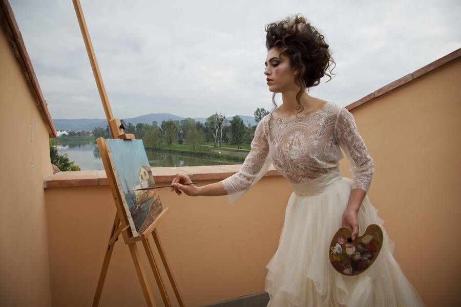 “We wanted to do an artist styled theme that would invoke new ideas and trends and where better to base an inspirational shoot then in Florence, which was the home to many of the greatest artists and sculptors in history and a city filled with love and passion”, says Dyana Dessar Simmons of The Weddings Company. Thus, the creation of this styled shoot.