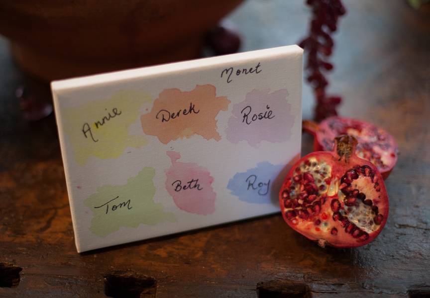 The table plans. The team used a small canvas for each table which they named after a famous artist. This can be easily and affordably replicated for an art themed wedding.
