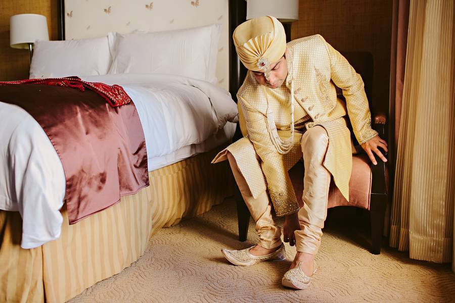 It is a tradition for the sisters/girls from the bride’s side to steal the groom’s shoes once he takes them off at the Mandap. Sudi took his shoes off and as they sat at the stairs of the Mandap the girls from Juhi’s side began to plot their strategy. As a few girls began to approach the Mandap, Sudi’s cousins realized and quickly ran to snatch the shoes from the girls’ hands. During the ceremony, the stealing of shoes continued in the background until one of Sudi’s friends brought him his shoes as we were signing the marriage license. And of course, the girls had not given up. They were there as he put his shoes on to steal them right from under his feet. The day ended with one shoe in the bride’s hand and the other lost!