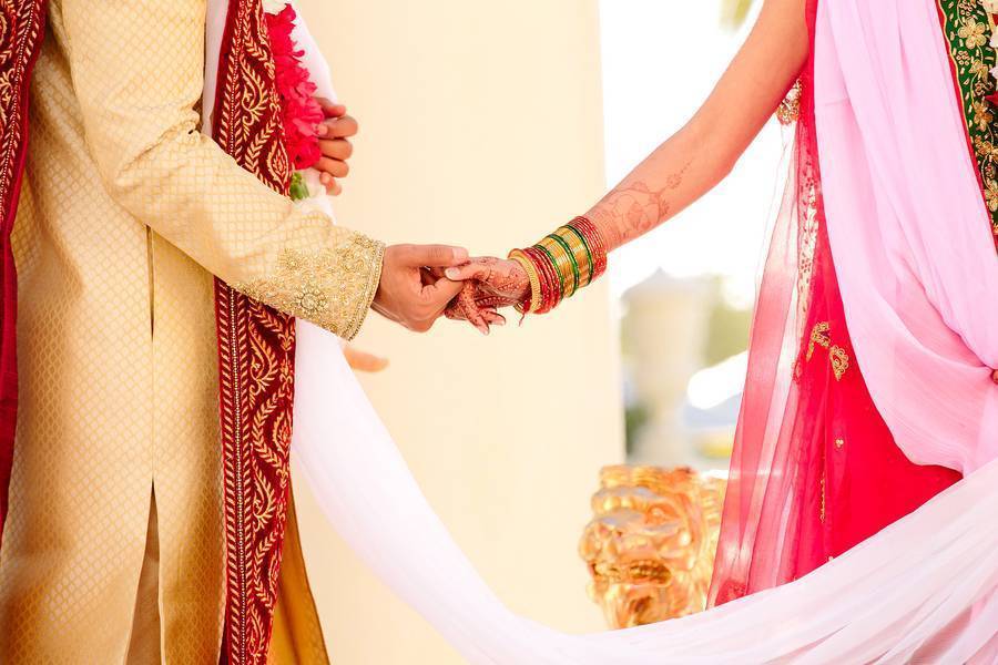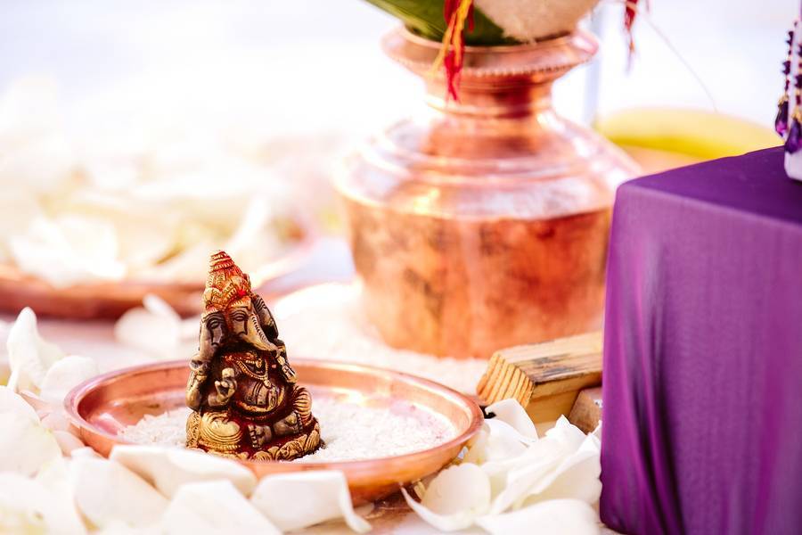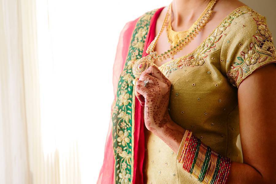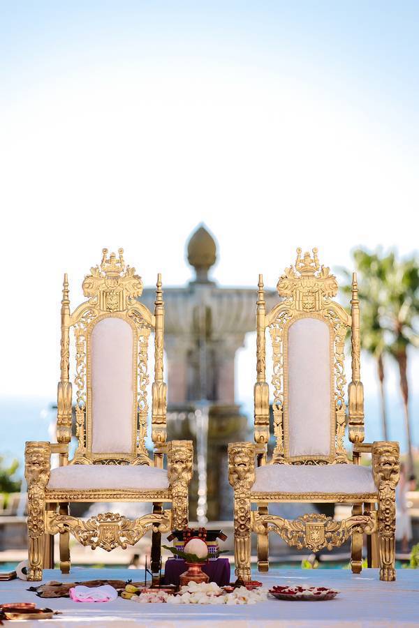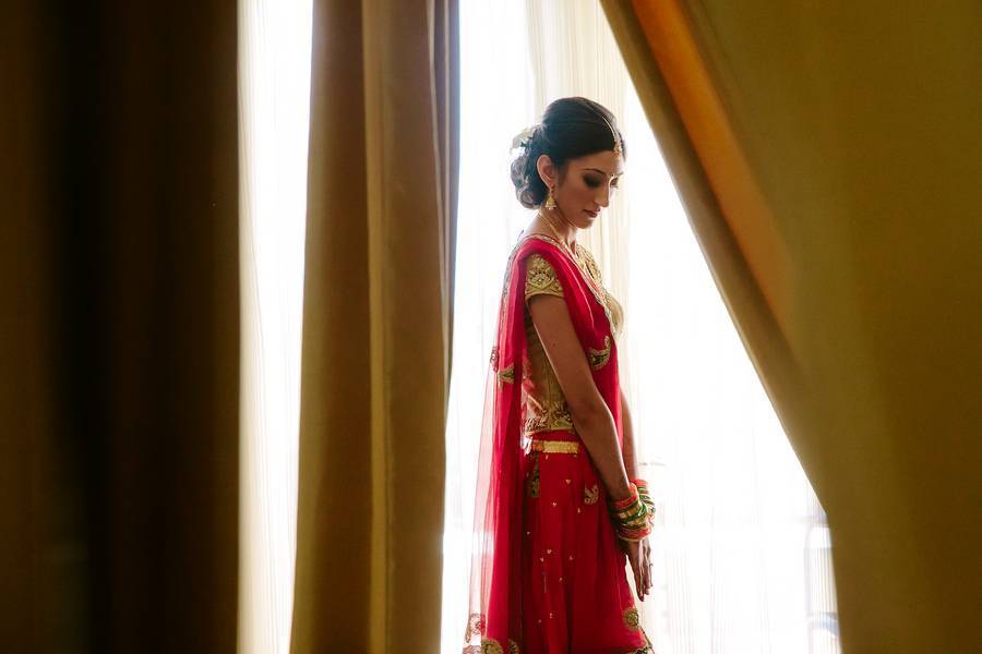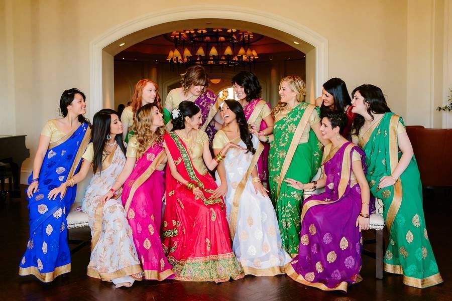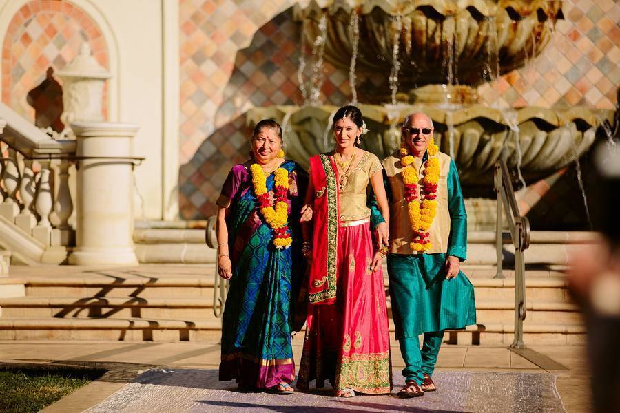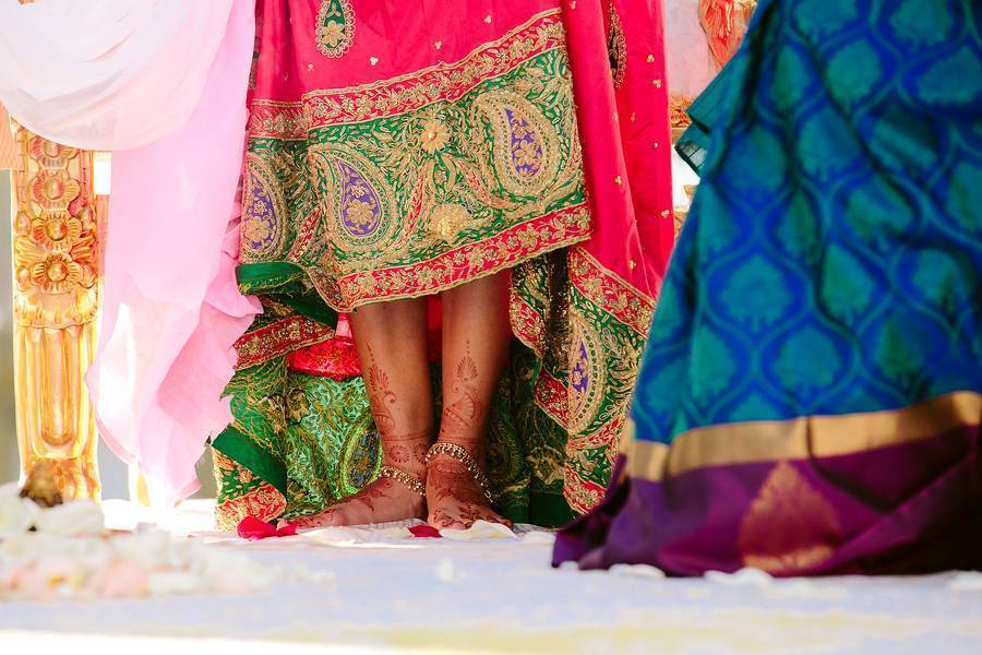 Bride wore her mom’s wedding outfit. It fit her perfectly and had traditioal gold and silver hand word that was still shinning! Groom had a custom tux made. The rest of the outfits we wore throughout the Indian wedding week was hand picked in India by the bride.