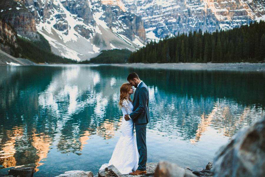 The picturesque Moraine Lake is so surreal that the reflection of glacial peak looks stunning. The rocky slopes and the evergreen pines over the horizon create this unison of rigidity and sweetness. Certainly, the best location to capture your memorable engagement session!