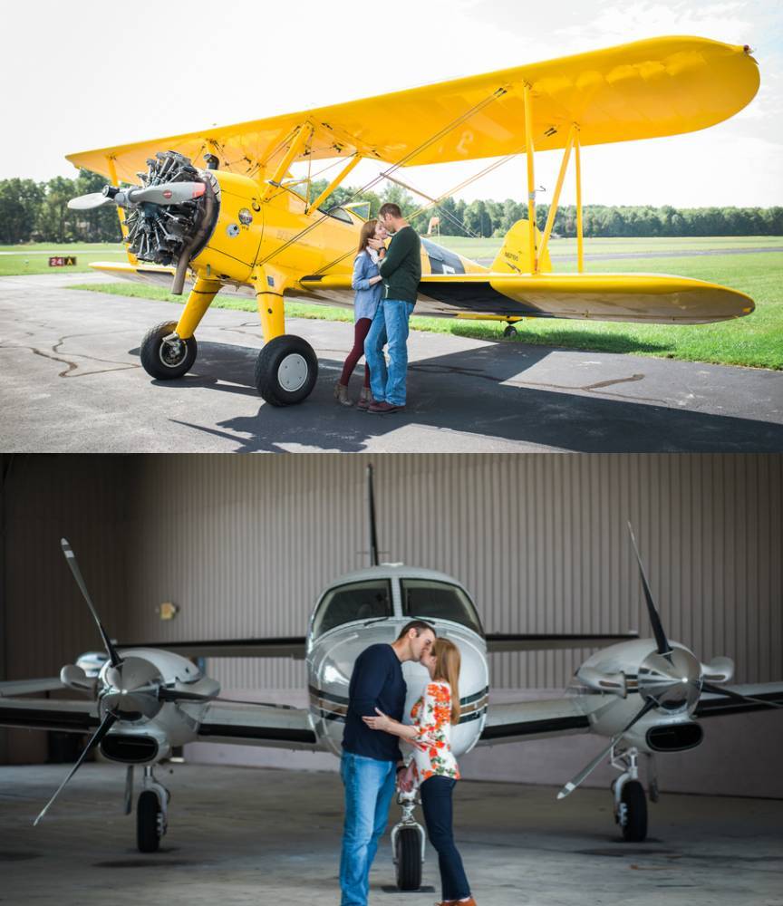 This stunning photo shoot of Chris and Maeve shows how they both love airplanes. Captured with classic aeronautic marvels, the couple wanted their engagement session to be memorable and still show their love of flying.