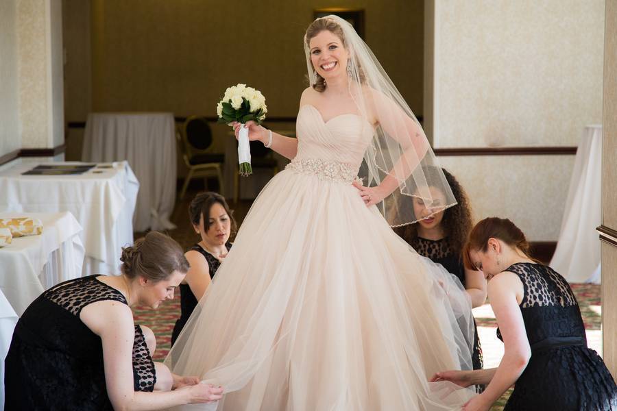 I knew I didn’t want to wear white. It scares me as a color. I’m pale and clumsy with dark liquids. Not a good combination. The color of my dress was initially what drew me to try it on. It was the exact opposite of the style I wanted. I was thinking lace, a-line or dropwaist, short train. But the second I tried it on, I was like “Oh! Oh ok! Or this works!” I bought it shortly after trying it on. Nothing else I tried on even compared.