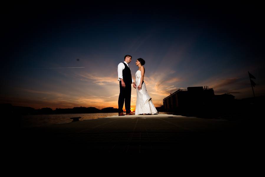As a photographer, I pride myself in being a MacGyver type. When I saw the sun was setting, I realized that we needed to find a location to create some stunning imagery. Well, the back of the venue was crowded with restaurant customers, so when I saw this tiny little 10 foot dock, i knew that was my only shot. Using some creative lighting and lens selection, we made the seen look epic, as if they were all alone on an island. This was very rewarding for me and I hope for my couple as well!