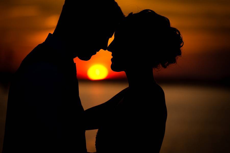 The sunset portraits on the water.