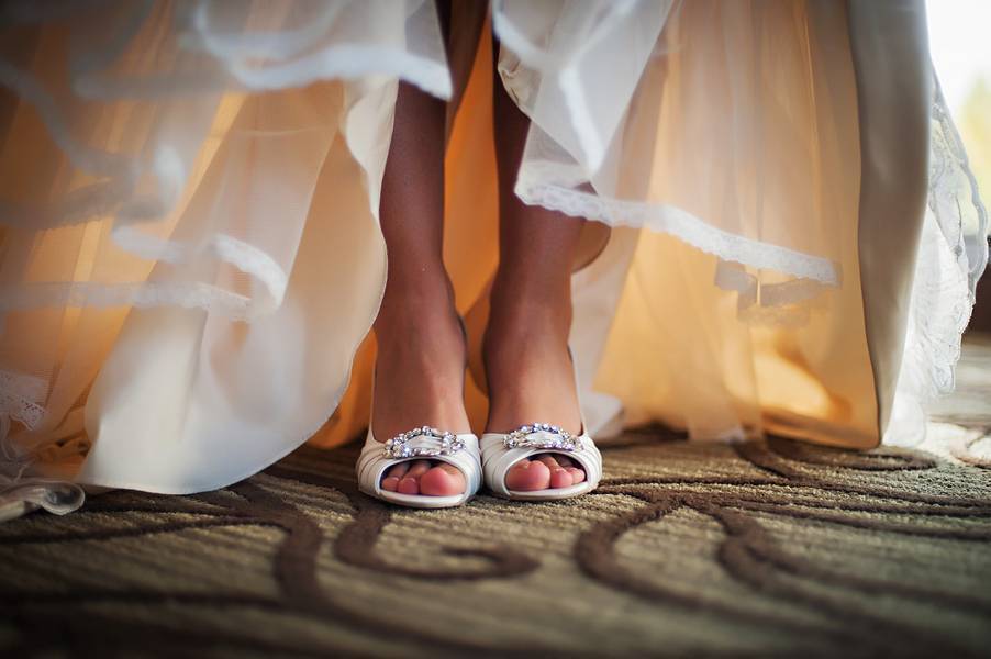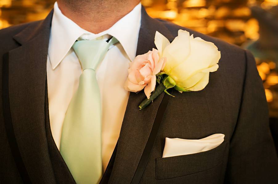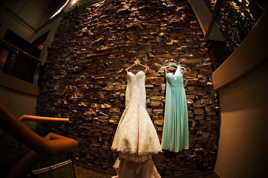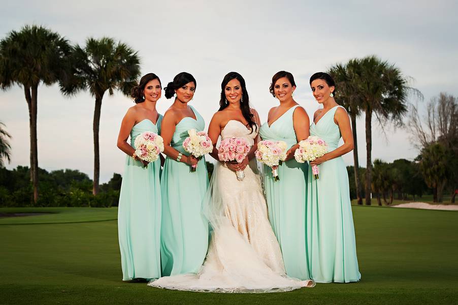 Our vision- classic and timeless, my dress- a Matthew Christopher Marilyn which was hand sewn lace, my veil- which was as long as my dress train and had a touch of sparkle from the clear beading, and the time of yearSpring. The bridesmaid dresses were one shoulder mint green Bill Levekoff and the men wore dark gray Vera Wang suits. Diamonds and pearls for jewelry.