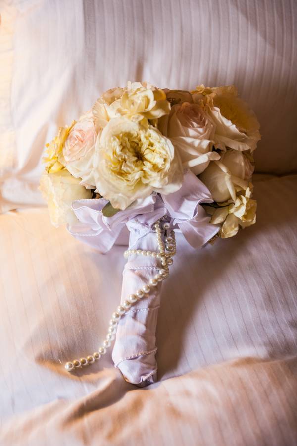 The bouquet. Natasha carried a bouquet out of peonies in blush and green.