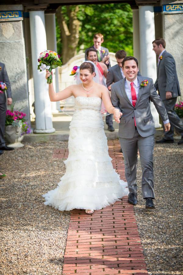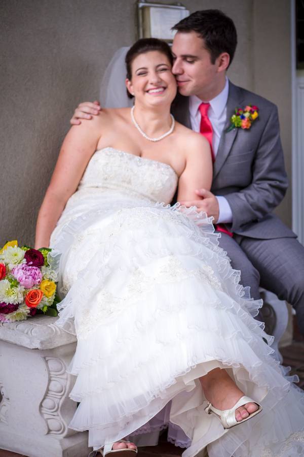 This wedding is just filled with beautiful people and colors! I love the variety of hues they chose for the palette. The bouquets were filled with orange, plum, pink, yellow, and green flowers, and despite this randomness it looked nice matched with our bride’s elegant gown. The centerpieces was the perfect pop for the simple table arrangement. Even the guys wore colorful accessories (boutonnieres and ties).What added more personality to the wedding is the entourage themselves too – doing some silly and sweet poses with our couple, they made the day feel light and jolly. Congratulations on such a beautiful wedding Brielle & John!