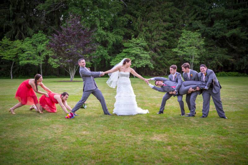 Getting ready with the groomsmen and enjoying our home brewed beer. Taking wiffle-ball pictures in our suits Saying I do to my beautiful bride!
