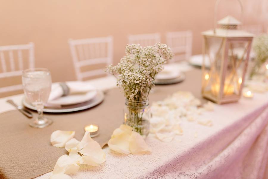 The inspiration came from a classic wedding, where simple neutral colors gave way to a palate of opportunity. There were hints of rustic backgrounds that contrasted well with the bridal party’s elegant and classy attire. The reception tables included vintage lanterns mixed with timeless cream rose petals, topped off with darling baby’s breathing florals.