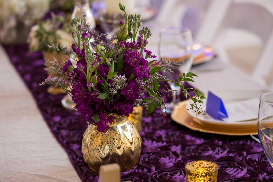 I love the color purple and all things metallic. Classic, elegant, timeless. I didn’t want things to be too ‘matchy’ so we mixed it up with golds, silvers, champagne, and various shades of purple.
