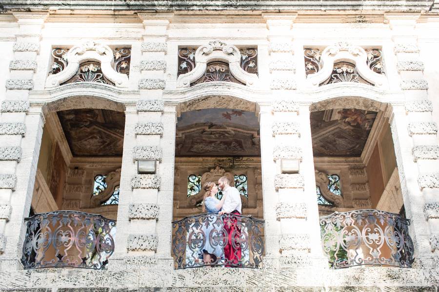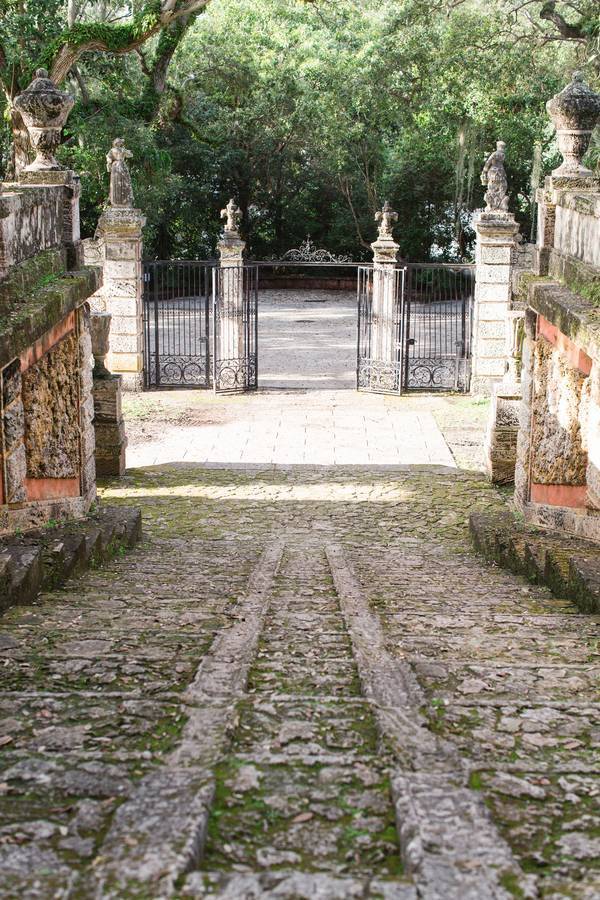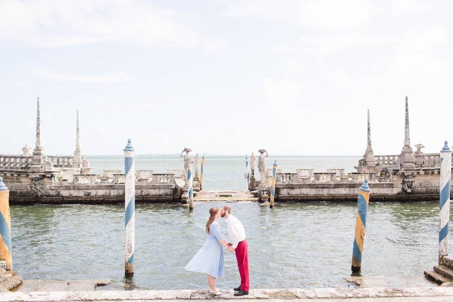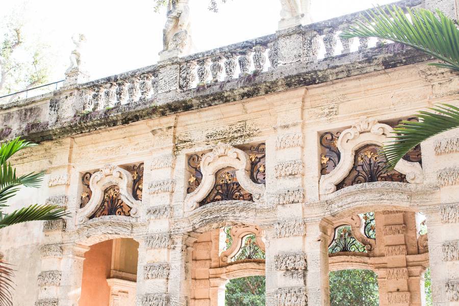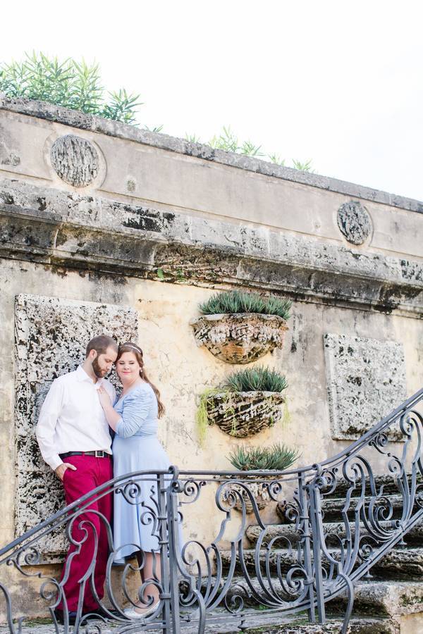 Vizcaya Museum and Gardens, Florida. The location in which Carrie and Matt’s engagement photos were shot at was absolutely breathtaking! Between the lush greenery, and castle-like architecture, it was absolutely perfect for our theme!