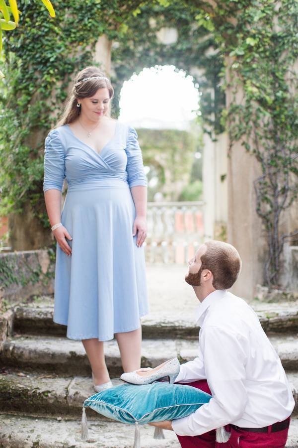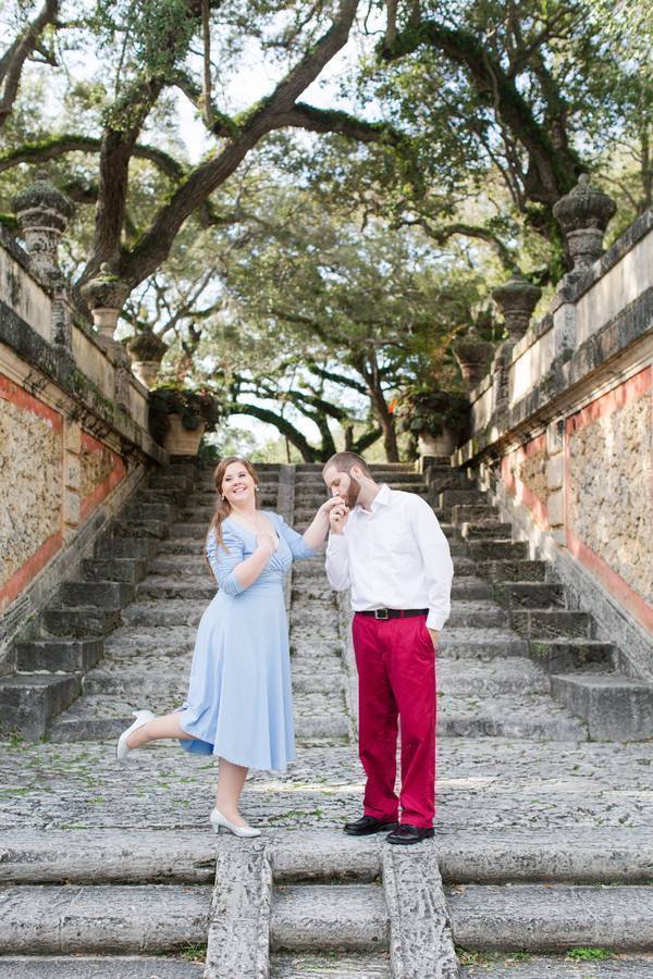 “Every once in a while, in the middle of an ordinary life, love gives us a fairytale”. This quote is real for Carrie and Matt. Every inch of Vizcaya Museum and Gardens in Florida created the perfect scene for their enchanted engagement shoot. The couple is tying the knot on April 16, 2016 and their goal is to create a Cinderella themed wedding with a modern touch. From the light blue dress to the sparkly princess slippers to the Cinderella themed props, every detail hinted at the lovely fairytale story. Not only was this theme adorable but it also was a beautiful reflection of their incredible love story.