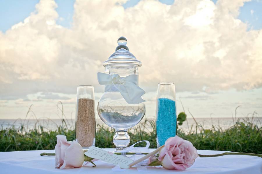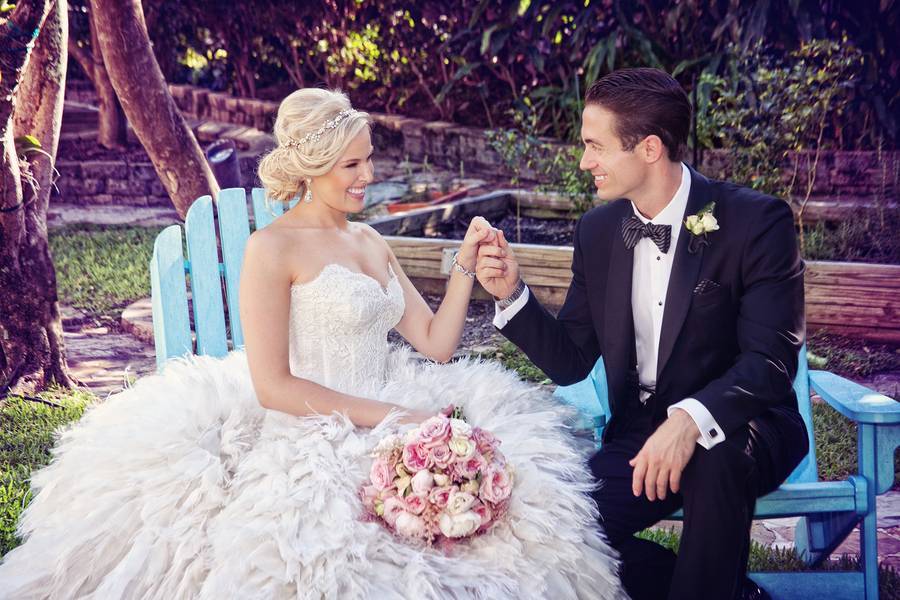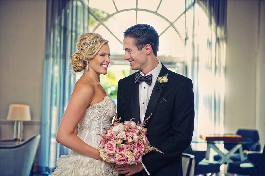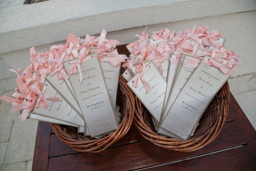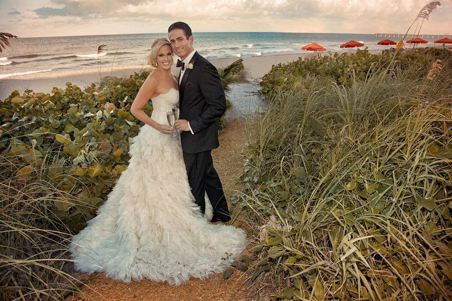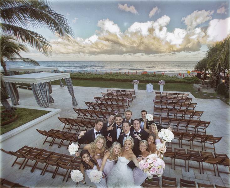 We enjoy boating, jet-skiing, fishing and just living in sunny South Florida. Danny and I knew we wanted to get married near the beach and water, and after we had visited the Four Seasons, we knew it was the place for us. The resorts grounds are stunning, from the landscaping outside to the beautiful flowers inside. The ceremony location overlooked the ocean and was perfect for the sunset vows we had in mind. We wanted the theme to be classic elegance, with our colors being blush and champagne. Champagne itself was also a theme- from the signature cocktail (rose champagne with gold sugar rimmed glasses) to the champagne “guest book,” and the mini bottles for the guests’ favor and seat assignment.