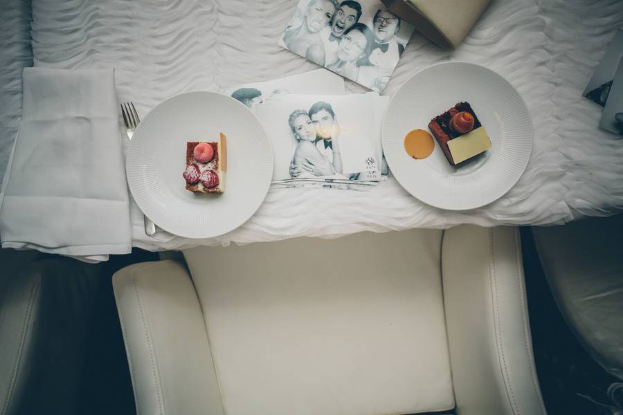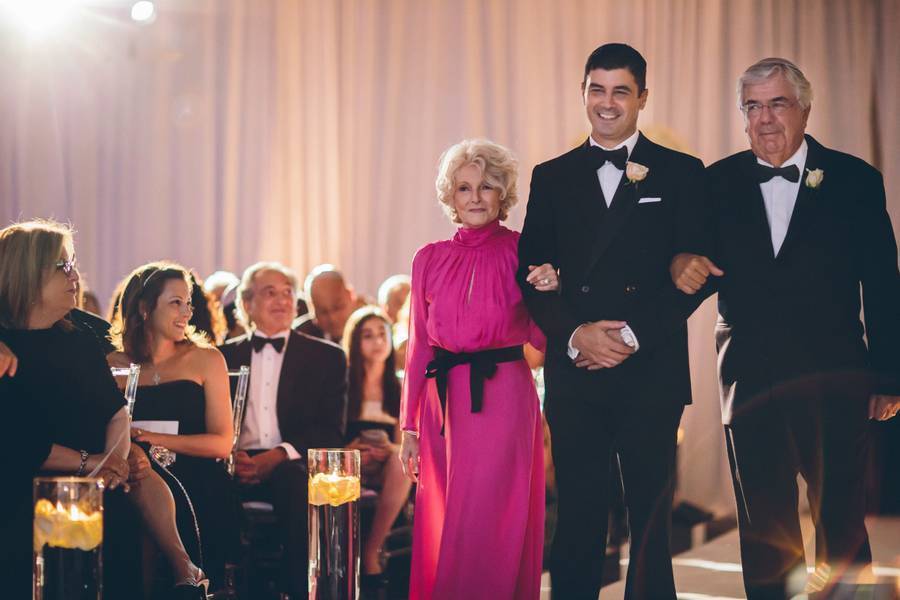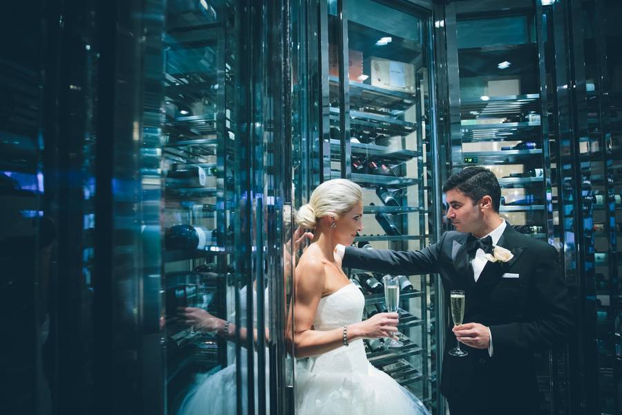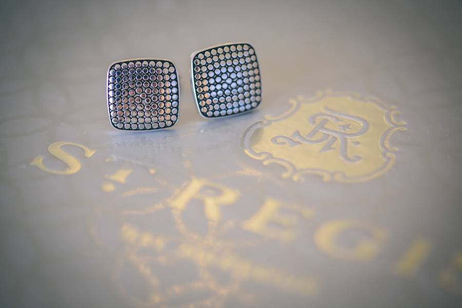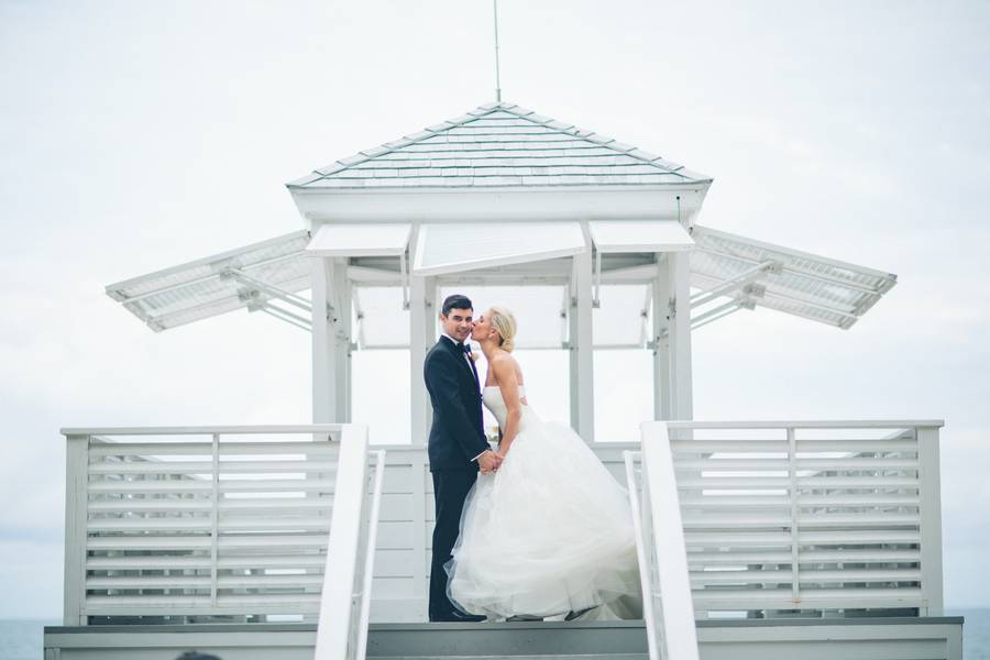 The wedding venue. Stephanie and Matt got married at the St. Regis Bal Harbour Resort. It’s crystal and mirror-filled lobby made for an elegant backdrop to the couple’s glamorous photos.