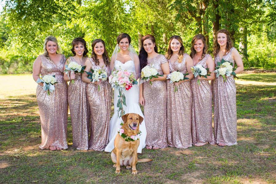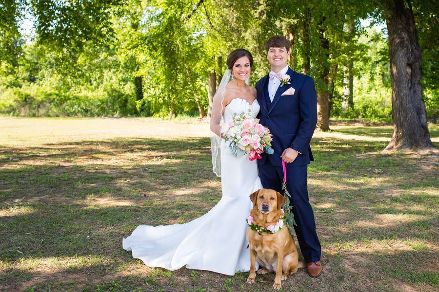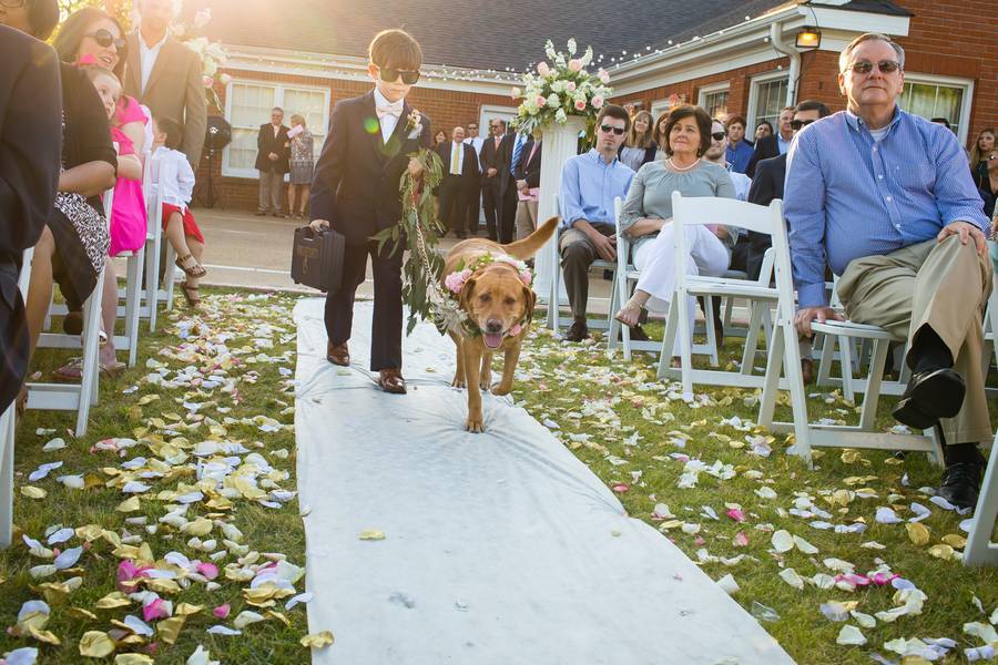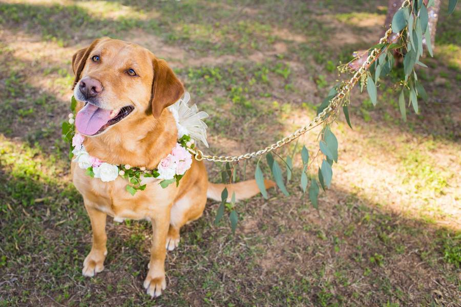 The flower girl. Their flower girl was their dog! She was decked out with flowers and a gold leash.