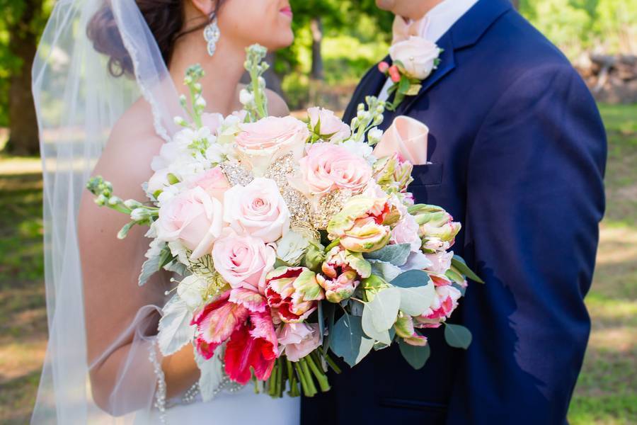The bouquet. The bouquet was extraordinary, with gold butterflies and very unusual tulips.