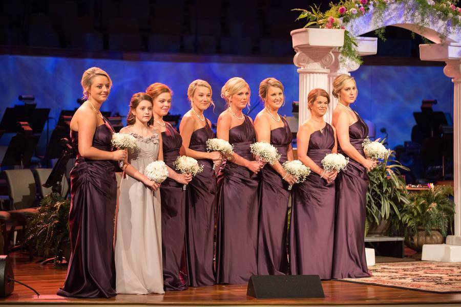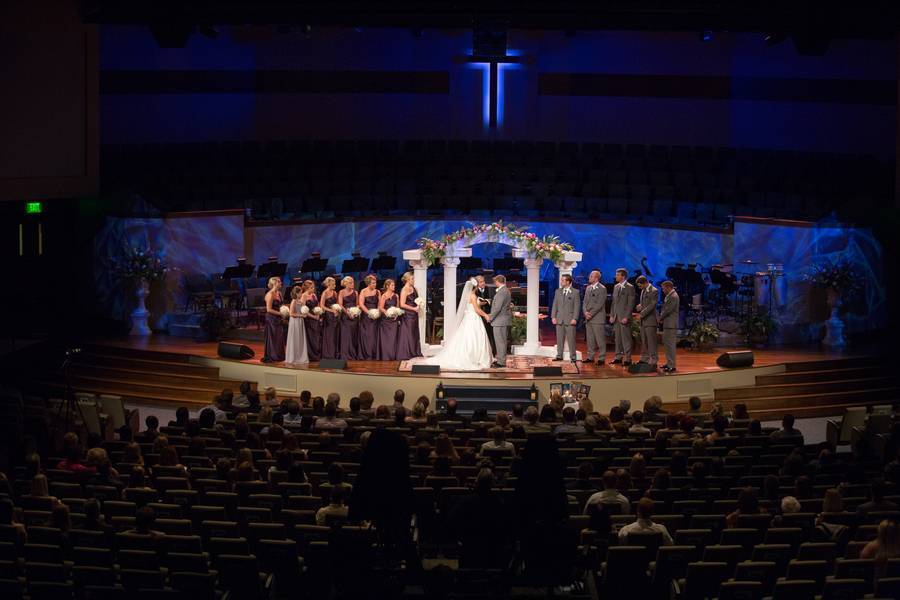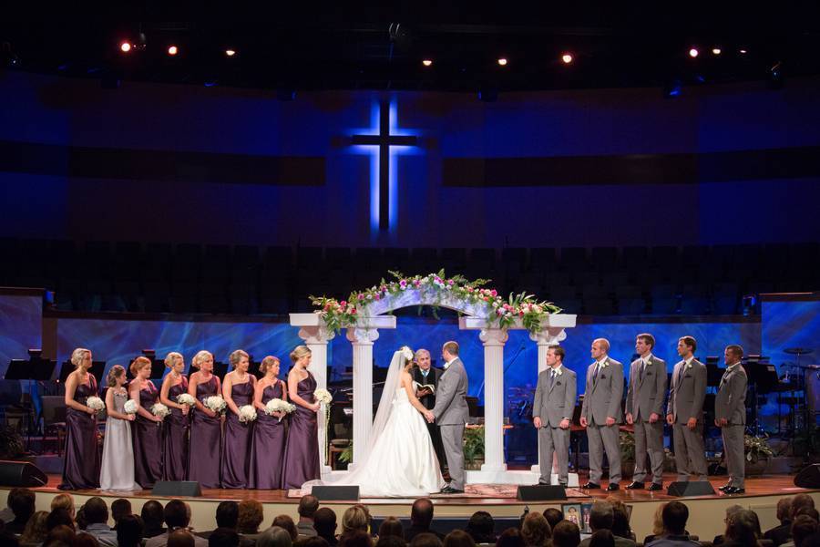 The ceremony was held on stage at the Gardendale First Baptist Church with an array of blue lighting and spot lights I frenzy about (love, love, love!). As guest took their seats and the wedding party made their entrance, Sidney had planned a grand entrance that could include both of her fathers. Everyone stood as she made her way into the auditorium while tears filled everyone’s eyes. She joined Tyler at the alter and they lit the candles in memory of family members that have passed. The couple included a few special additions to your traditional wedding ceremony such as the cord of three strands and communion.