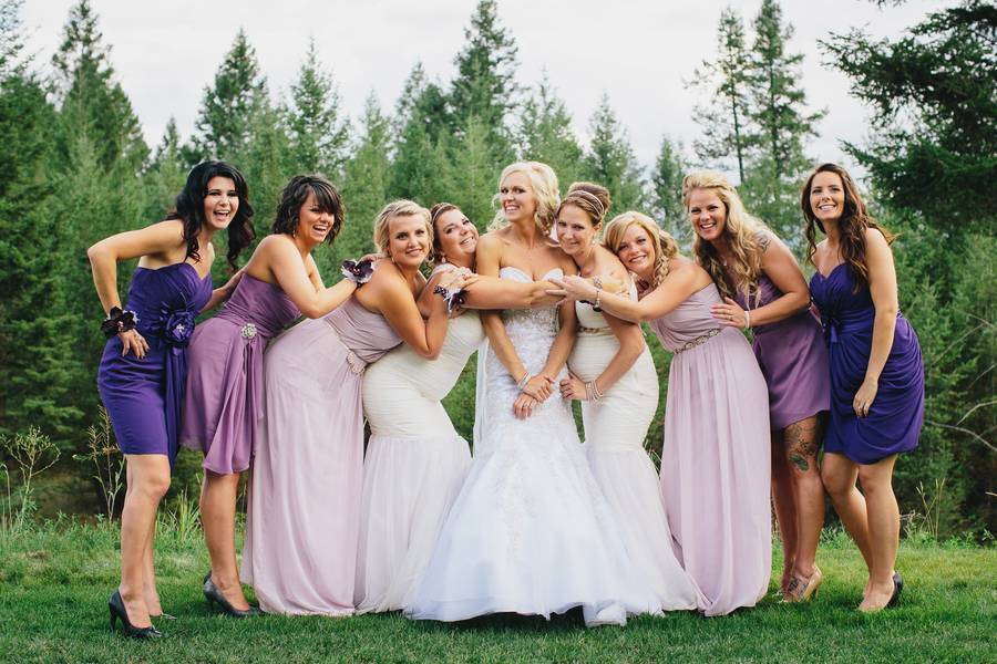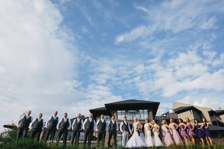 The girls were all in an ombre inspired colour tone and the guys were in very stylish grey suits with purple accents to match their partner for the day. The bride was in an exquisite dress from the Bridal House. It was full of gems but didn’t stand a chance out shining the smile on her face that day.