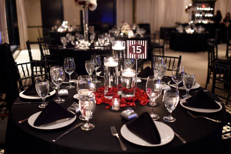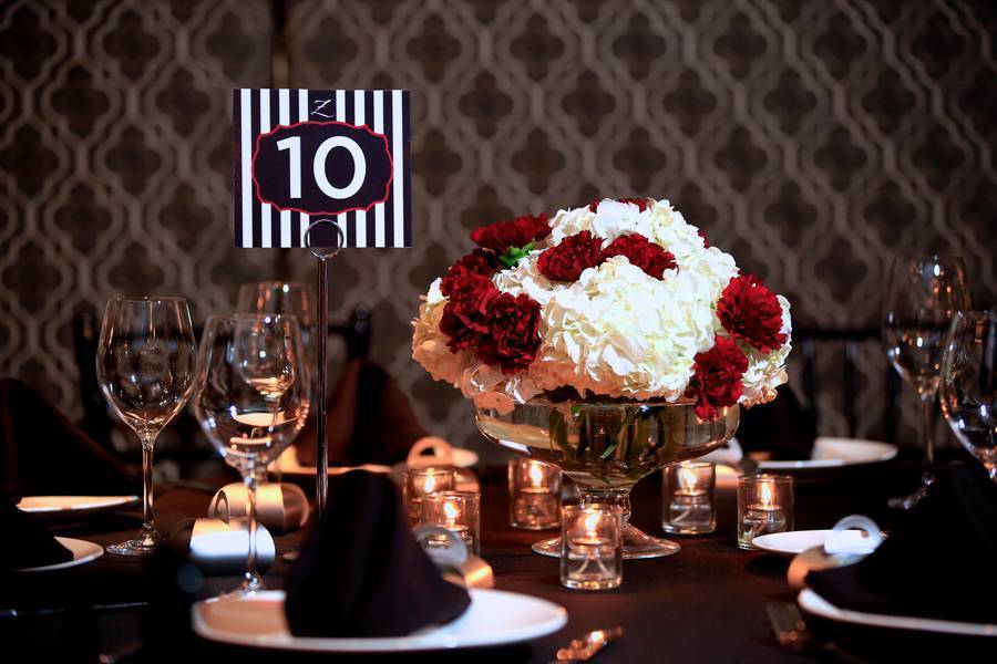 The color palette. Classic black and ivory with shades of red and burgundy to add “pops of color.”
