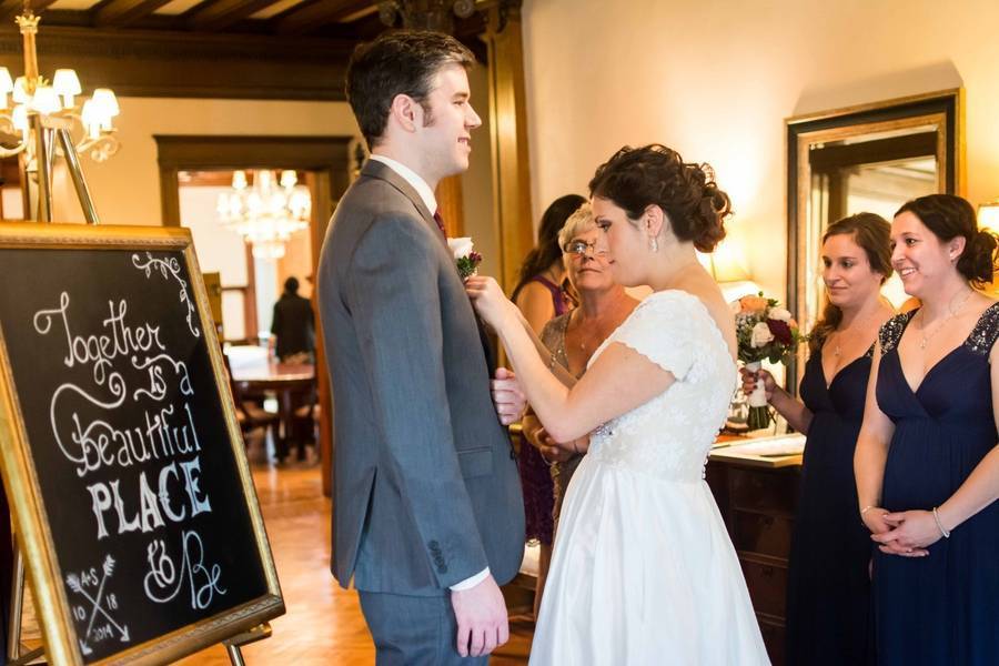 We wanted to have an elegant but warm/comfortable wedding. We chose our venue because nearly all of it is already beautifully decorated and styled. Most of our energy went to the ballroom where we chose to use golds and deep jewel tones to continue the warm theme.