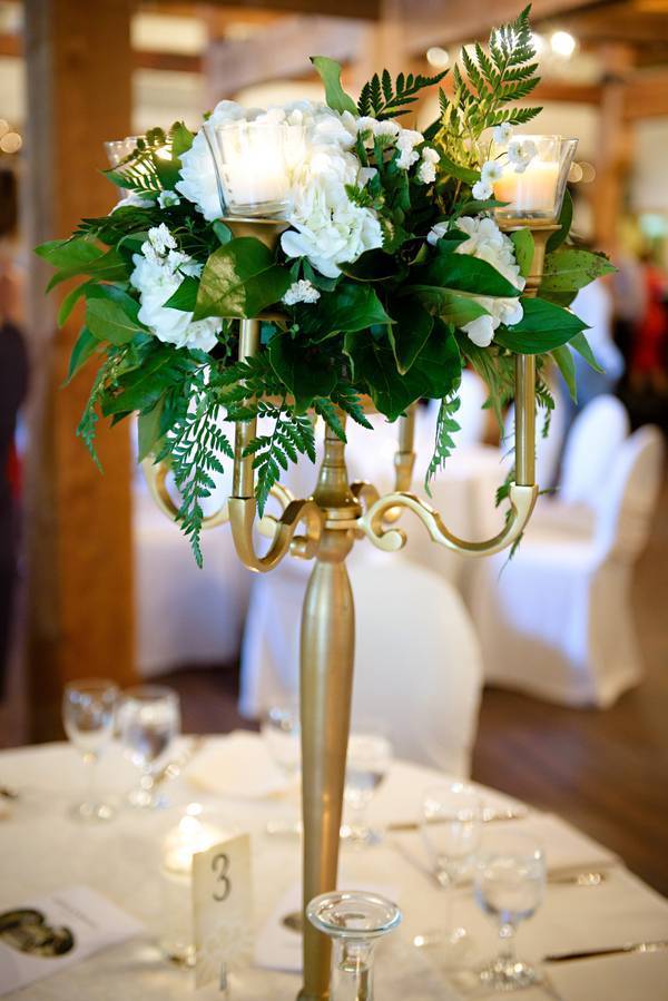 The homey, vintage backdrop provided a beautiful contrast to the timeless and classic flowers and decor, provided by the bride’s aunt, Marge Rutten of Under the Grapevine Decorating and Floral Design.