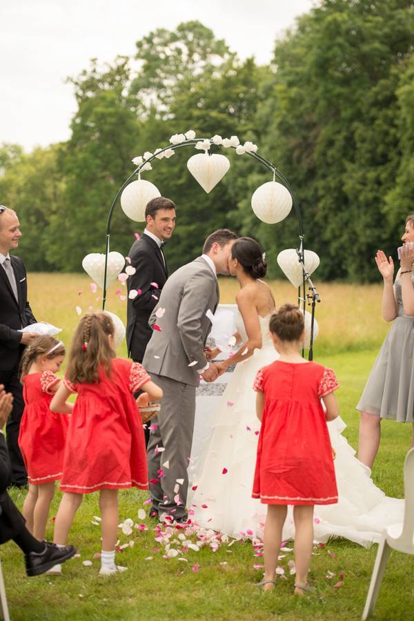 We met in San Francisco at a house party. Pierre was visiting SF with his best friend when we met at the house party. My friend knew the host throwing the party, and Pierre’s bestfriend also knew the host of the party. Needless to say, we met randomly at the house party through mutual friends. When we met at the house party, there was this instant connection and mutual attraction we had for each other. Pierre asked me out for a date for that weekend, and we exchange numbers to meet on Sunday for drinks. We decided to meet for drinks at a French place called Cafe de La Presse and ended up having dinner there since the date was going so well. We then spontaneously decided to go to karaoke after dinner. It was a nice date, but we both knew that it had to end at some point. Pierre had to fly back to Paris to go home, and we kept in touch every day since he left, San Francisco. After six months of long distance dating, Pierre decided to move to SF so that we can be together and live in the same city. Later that same year, we got married at City Hall in SF for the civil ceremony and had our formal wedding in France a year later.