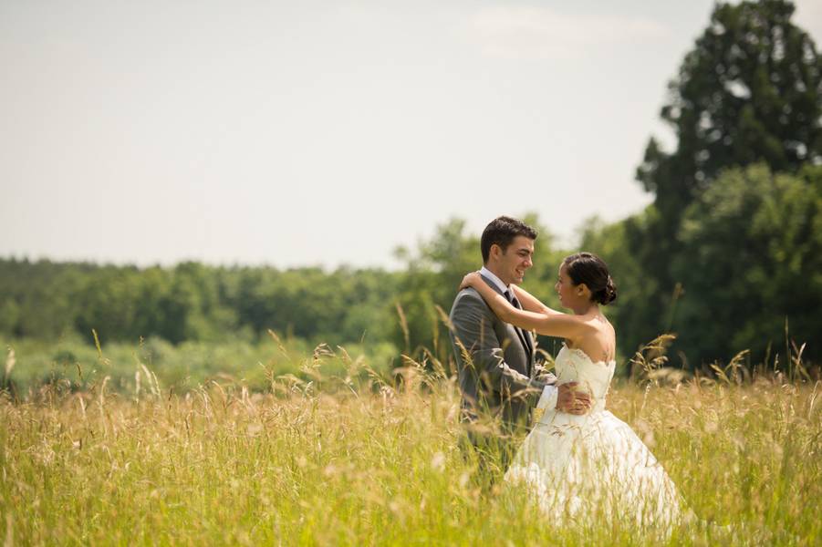 Our outdoor wedding ceremony started at 4pm in the afternoon. It was a warm, sunny summer day in June. There were 100 guests in attendance, and the cocktail session proceeded immediately after the ceremony within the garden. The cocktail lasted about 3 hours, and then everyone proceeded to the dining room for dinner. The dinner lasted a while. After the dinner, we cut the cake and served it to our guests just after the cheese plate entree. Then, the guests danced the night away until 7am the next morning.