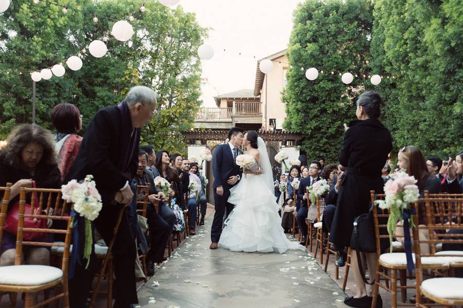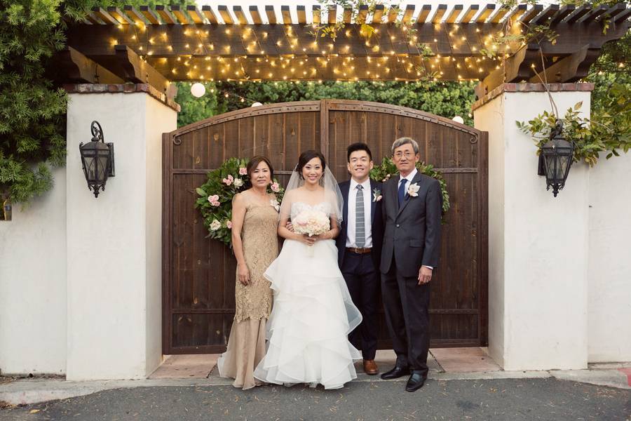 The challenge: There had been an unexpected guest RSVP to the wedding – El Niño. The outdoor garden wedding was originally booked in December, expecting the beautiful and warm Southern California winter season to grace everyone with sunshine. As the day drew closer, however, reports of El Niño storms frightened the couple and they considered tenting alternatives and even the possibility of changing venues. They then decided to take the chance and hope that the weather reports were lies. It rained the entire day before the wedding, but El Niño decided to stay home on the big day