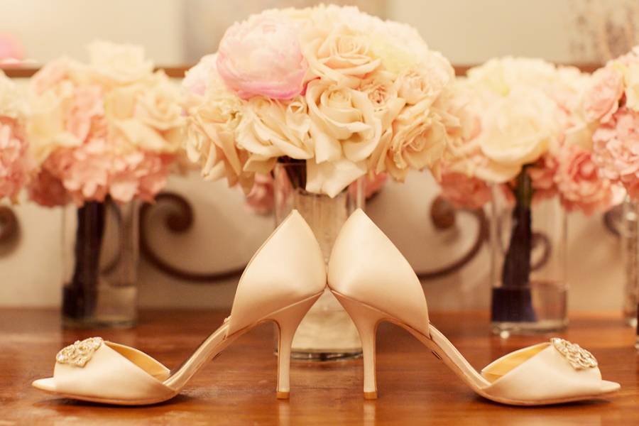 Custom decor: The amazing florist, Cindy, designed custom wreaths and custom gold frames with floral accents to make our decor dreams into reality.