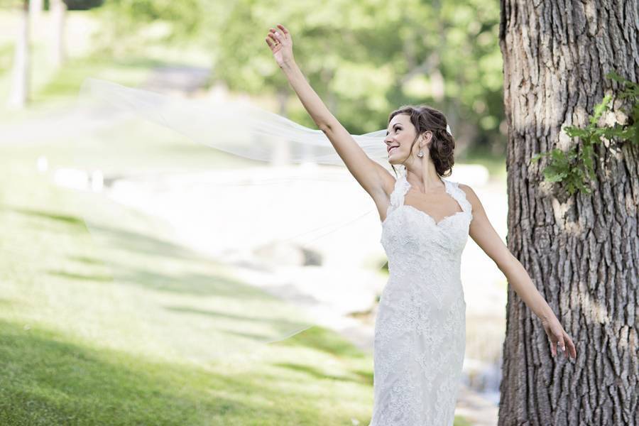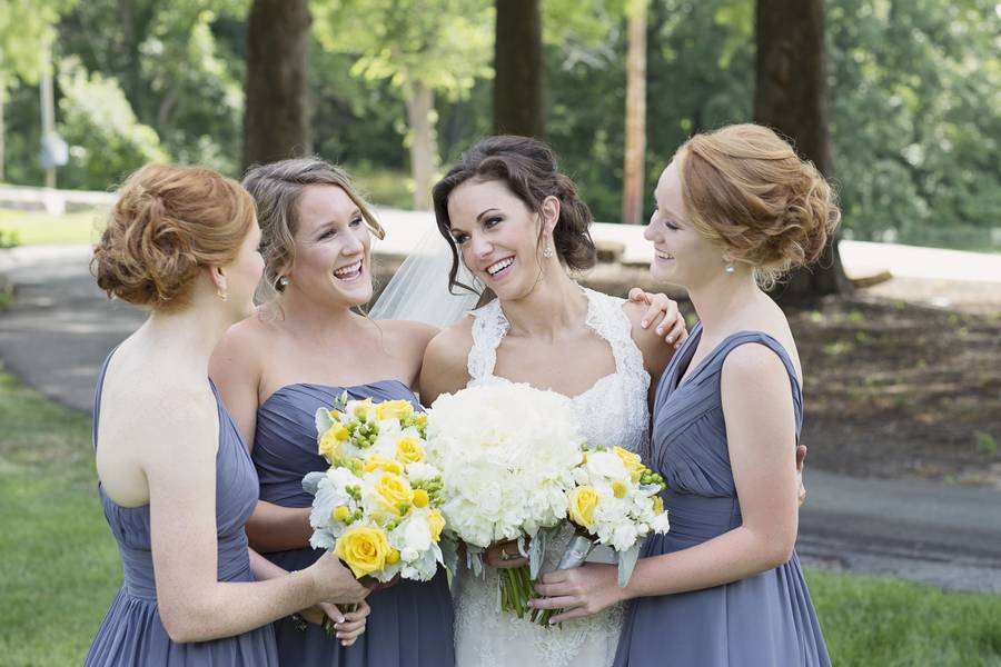 This was such a fun wedding. The girls got ready in a gorgeous condo in the Kansas City Plaza, the ceremony took place in a beautiful stone church that was a photographer’s dream, the wedding party rode in a trolley around town sipping champagne and dancing, the reception venue looked out over the romantic Lake Quivira where the couple spends most of their time, and the dance floor was never less than crazy crowded. Plus, to top off the night, Lauren and Bryan sped away from their reception on Bryan’s boat decked out in white lights. Totally “Love Actually.” So romantic.