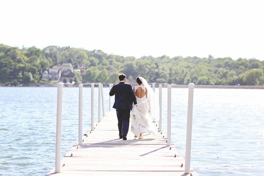 The send-off after the reception was incredible. The remaining guests congregated on a boat deck out on Lake Quivira for a gorgeous send off. Lauren and Bryan ran through the well-wishers onto Bryan’s boat, completely decked out in white lights, before speeding off to their elegant hotel!