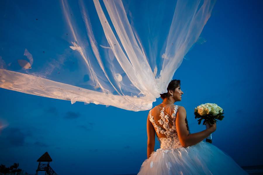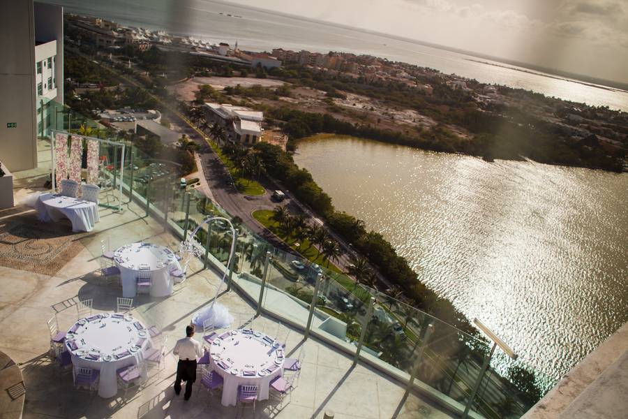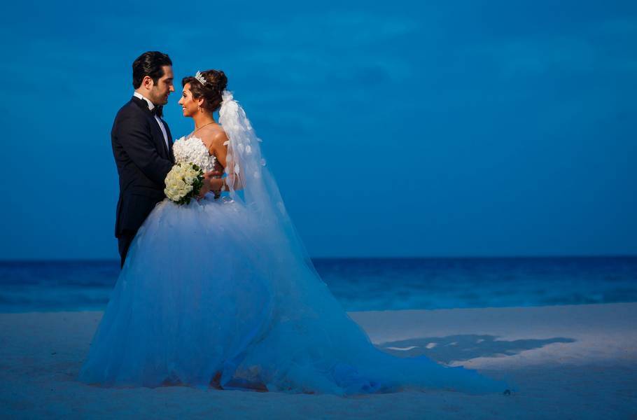 An elegant ocean view wedding at the Sky Terrace of the Beach Palace Resort with fireworks and tons of dancing towards the end of the night.