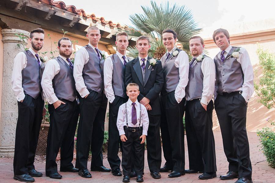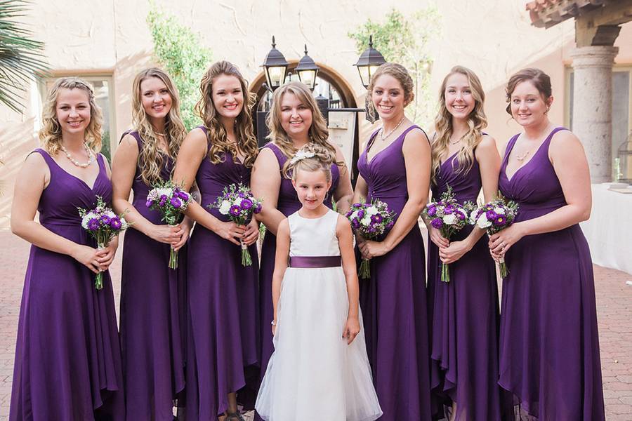 The bridal style. For a sophisticated yet fun and happy kind of wedding, Selah’s bridesmaids wore light and flowy, purple long dress. The groomsmen were sporting jacketless tuxedos to have a less formal look.
